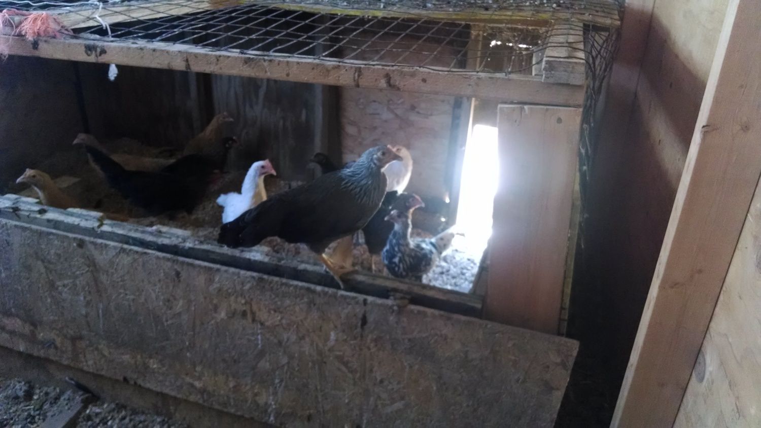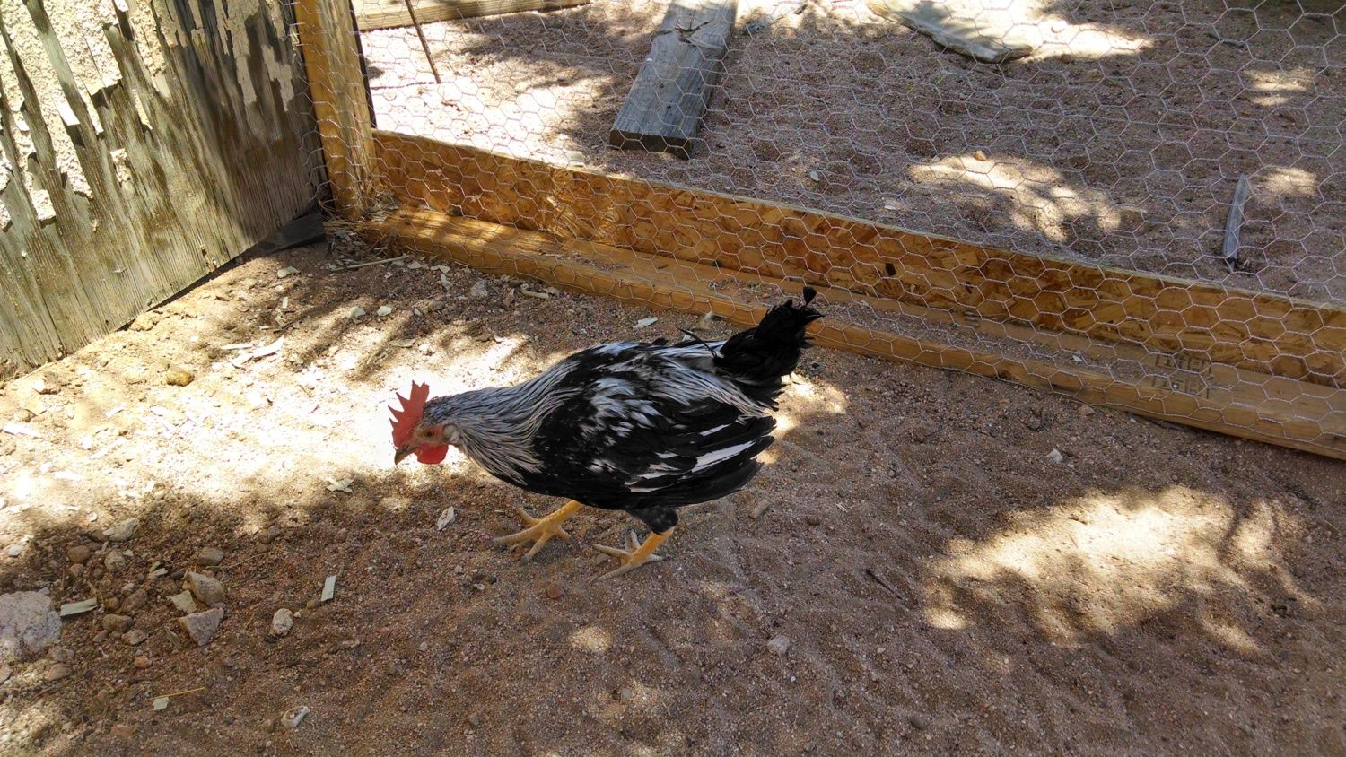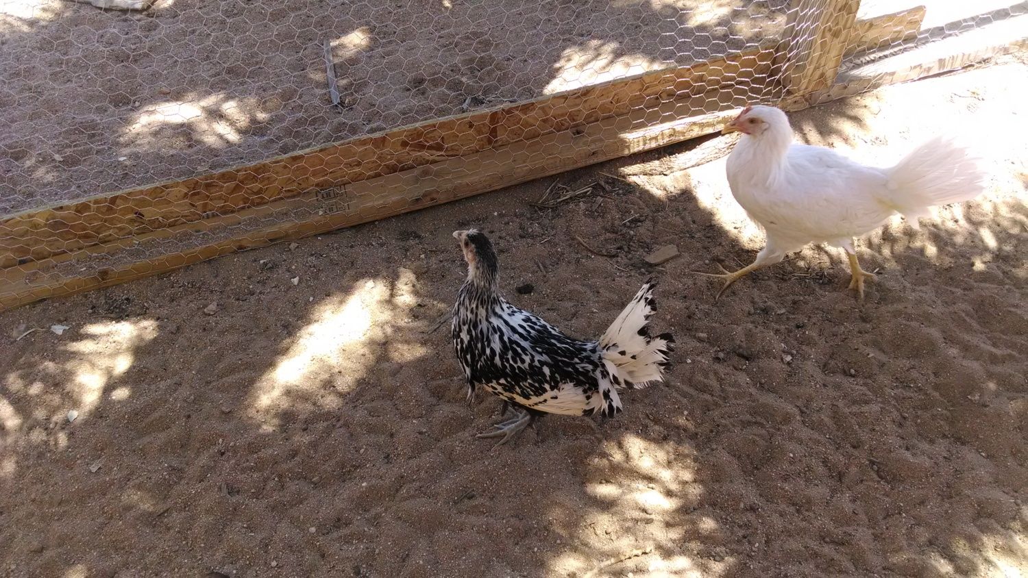 Here I think a pearl white leghorn and an I'm not sure about the blk/wht one. As a chick she looked like a blue andalusian?