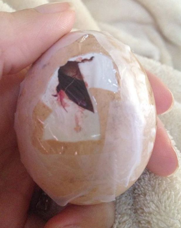 I was checking on my broody hen today and discovered a egg that has accidently gotten knocked around and broken. Part of the shell is now missing (about the size of a quarter) and the white membrane that holds the shell together is torn. There is a tin amount of blood and it appears the chick is STILL alive!