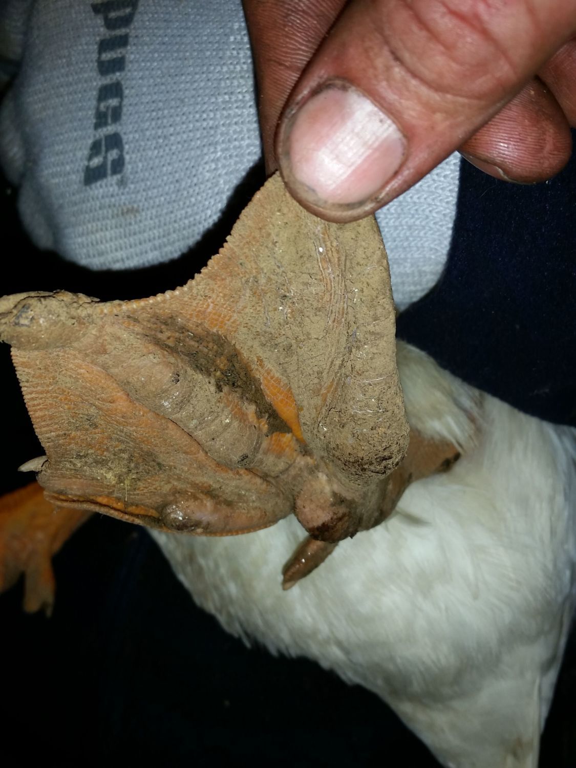 On Sunday(4/23) I noticed my Pekin duck limping. Not really thinking too much about it until the next morning when she was still limping. I thought maybe she had a splinter or something in it, but I can't find anything wrong other than a swollen spot on her foot. Is this a broken foot? I got my husband to help me take some pictures for clarity. She doesn't seem to be in any pain when I touch or move her foot. She is just limping still and not really putting any weight on it. When she's standing, she's mostly on one foot and she keeps the hurt one tucked away. Any advice would be appreciated. Thank you!