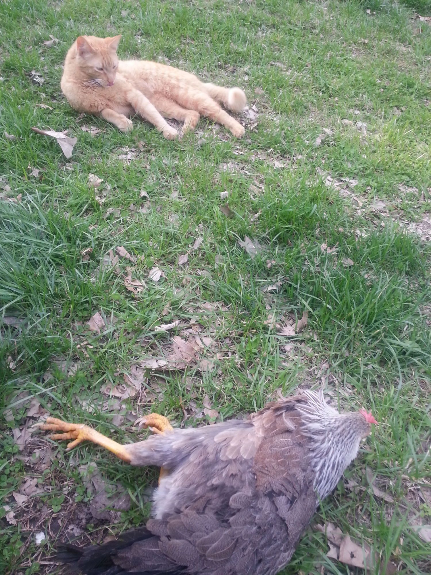 So, here are my questions and we'll see what you peeps think:1. Do you think it would be good motivation to put a bird in with her for a while when she's outside? The bird that came with her from the auction, JoJo, has decided he's a rooster now. He is getting bigger, but he is pretty close to her size still. He was one of the birds that was standing guard when she started getting sick.