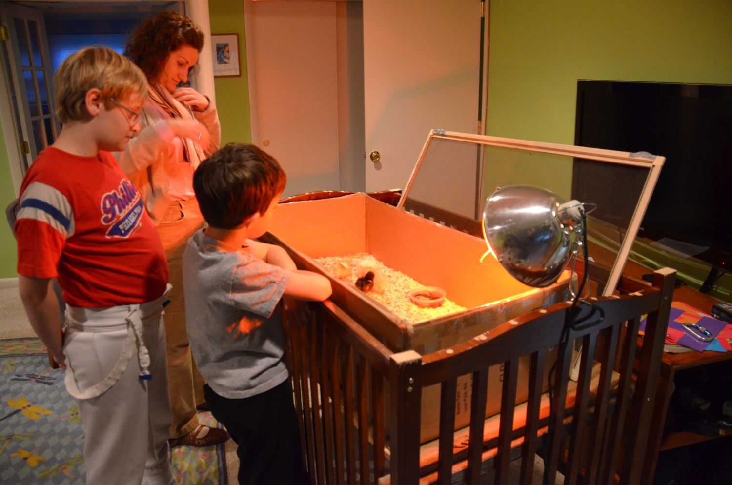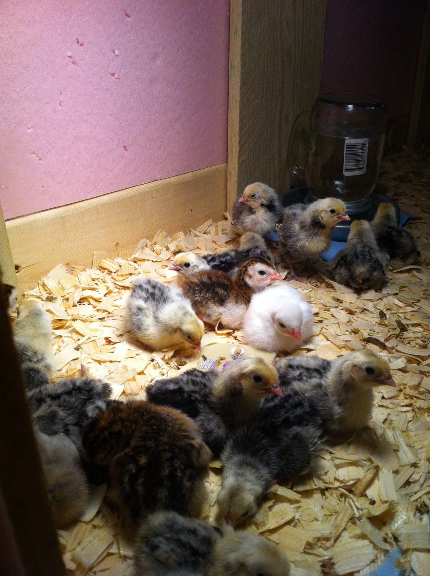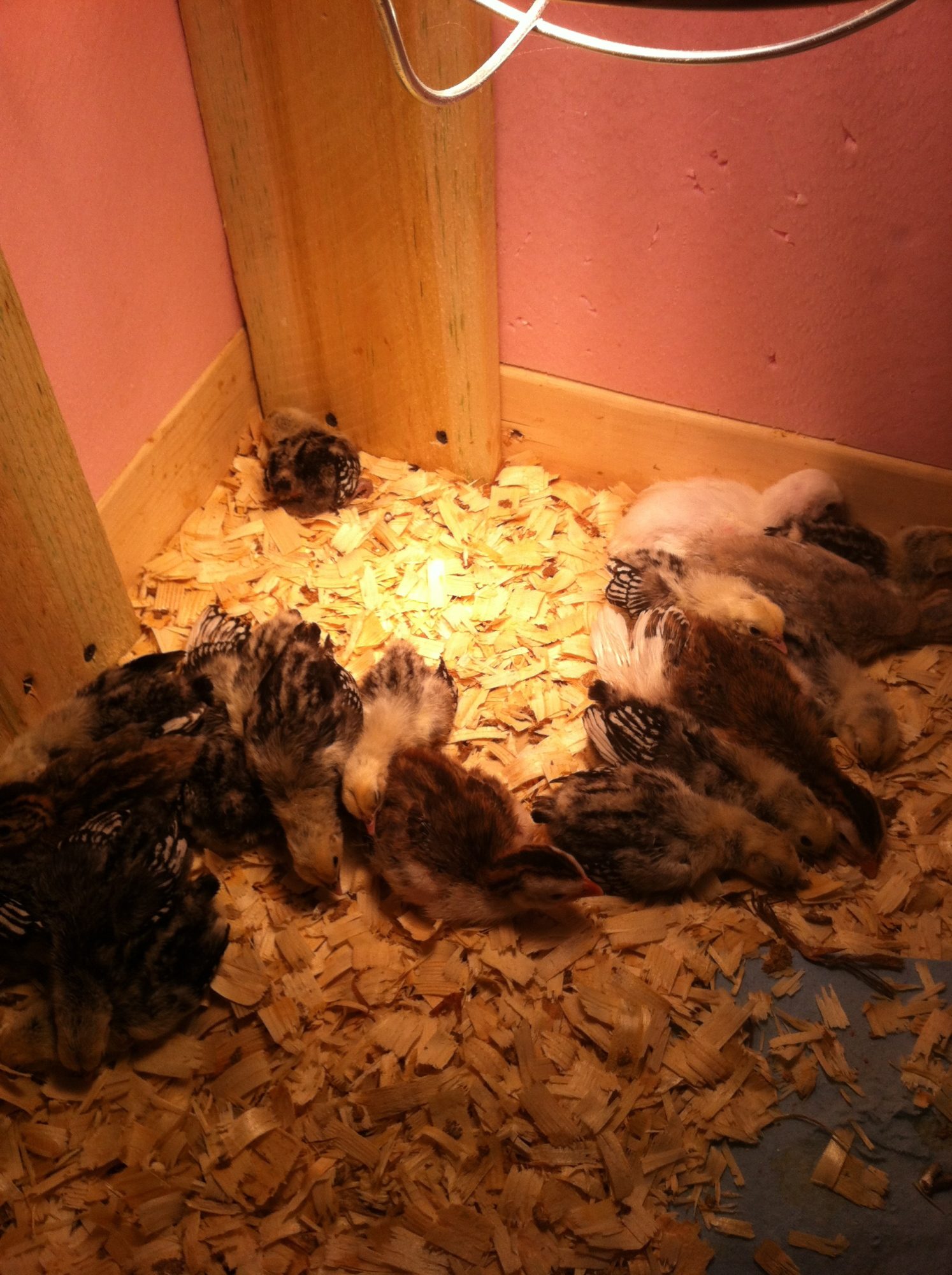 2. I borrowed a brooder lamp and I'm so far having to keep it about 22 inches above the level of the bedding (12 inches higher than the rim of the tub). I think I'll need to go out and buy a smaller bulb. But my question is this: Under what circumstances would a bulb as powerful as I've got EVER be useful? At any height similar to what I'm seeing in other photos of brooders, it would make the area underneath it at least 110 degrees (that's what the corner of my tub got to!).