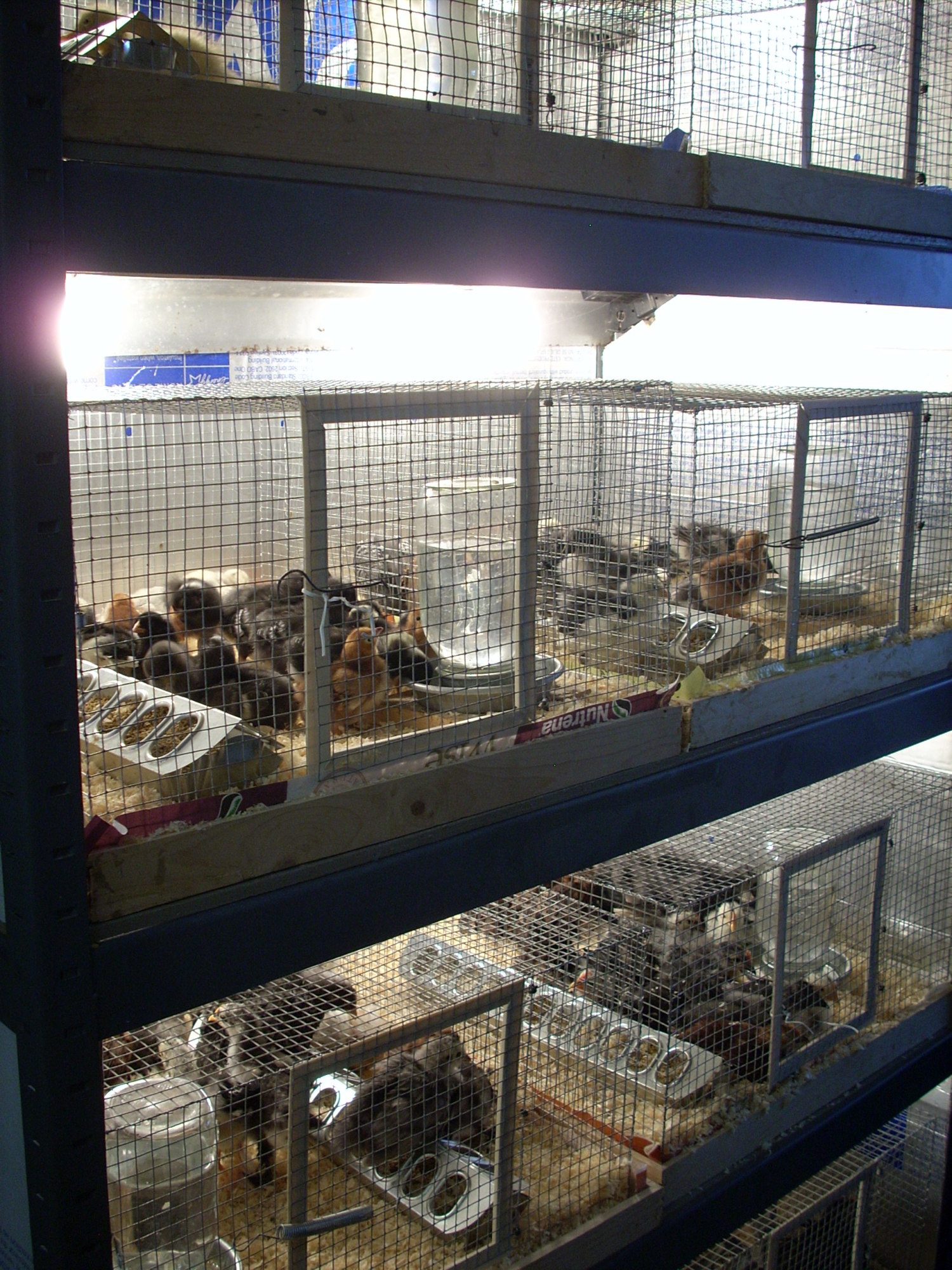 Really love you set up. We were thinking of doing the same thing in our brooder room in our barn as well. Can you please send more pics of what your set up looks like. Like a shot from the front ? Would like to see a more of a front view of your cages. I know of a guy that comes to our trade days that will make these for me. And I am like you i have 75 meat chickens right now that are in like 4 different cages 2 are really big one, 6 silkies, 1 fizzle, 1 unknown chick that are in one cage, 3 silkies that are juvinile in another. And my Bator goes on lock down friday with 4 different breeds in there. This set up is perfect for keep like breeds together. I bet it takes up less room too lol