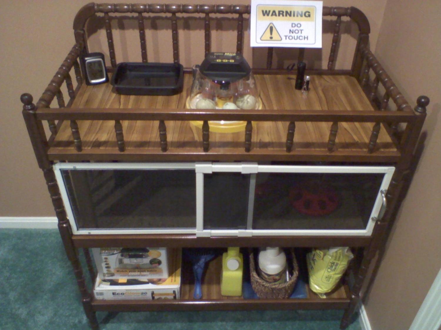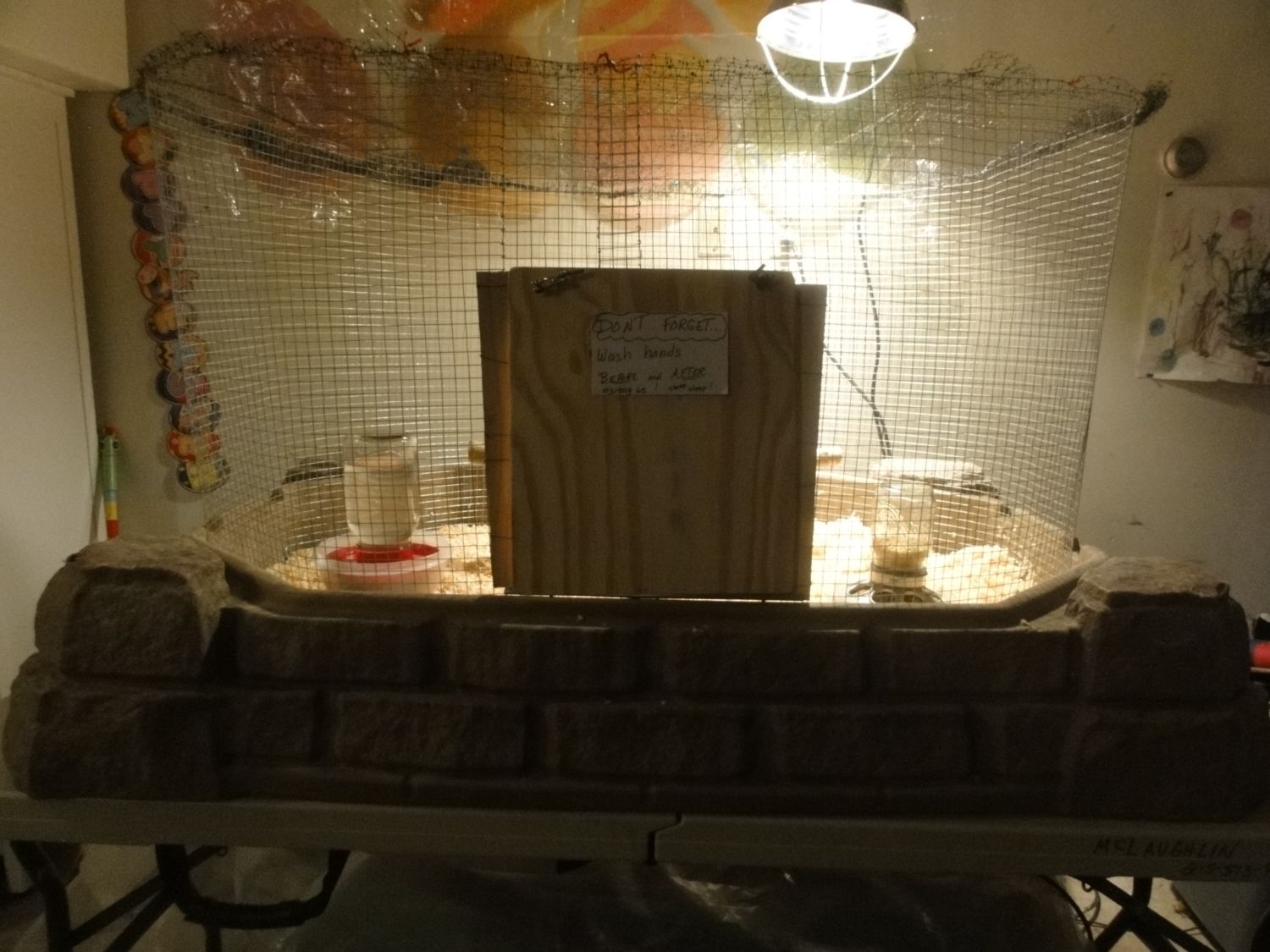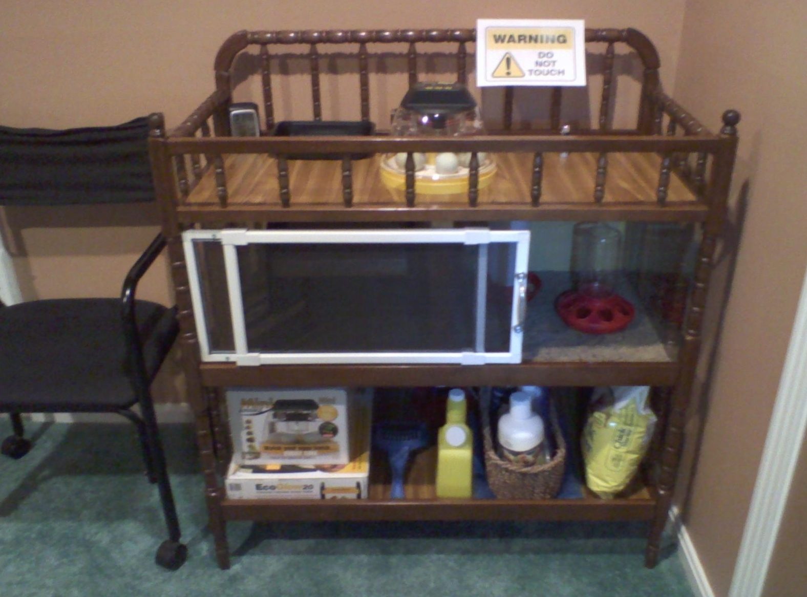 I built this out of our old baby changing table. I wanted it to look nice because I plan on using it through out the spring & summer. The sides and bottom are Plexiglas and the back is corrugated plastic. Sealed with a water proof adhesive/glue. I broke down and got a Brinsea [COLOR=FFC000][COLOR=000000]EcoGlow 20[/COLOR][/COLOR] so I wouldn't have to risk having a heat lamp inside all of the time. I'm using sand this so hopefully it will be easier to keep clean. Now we wait!:pop In lock down with hatch date tomorrow!
