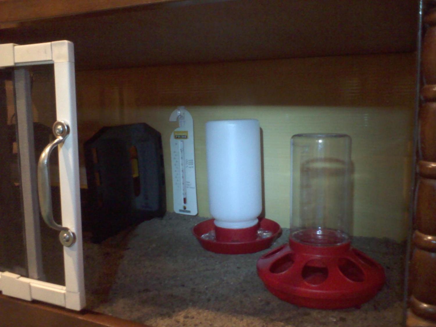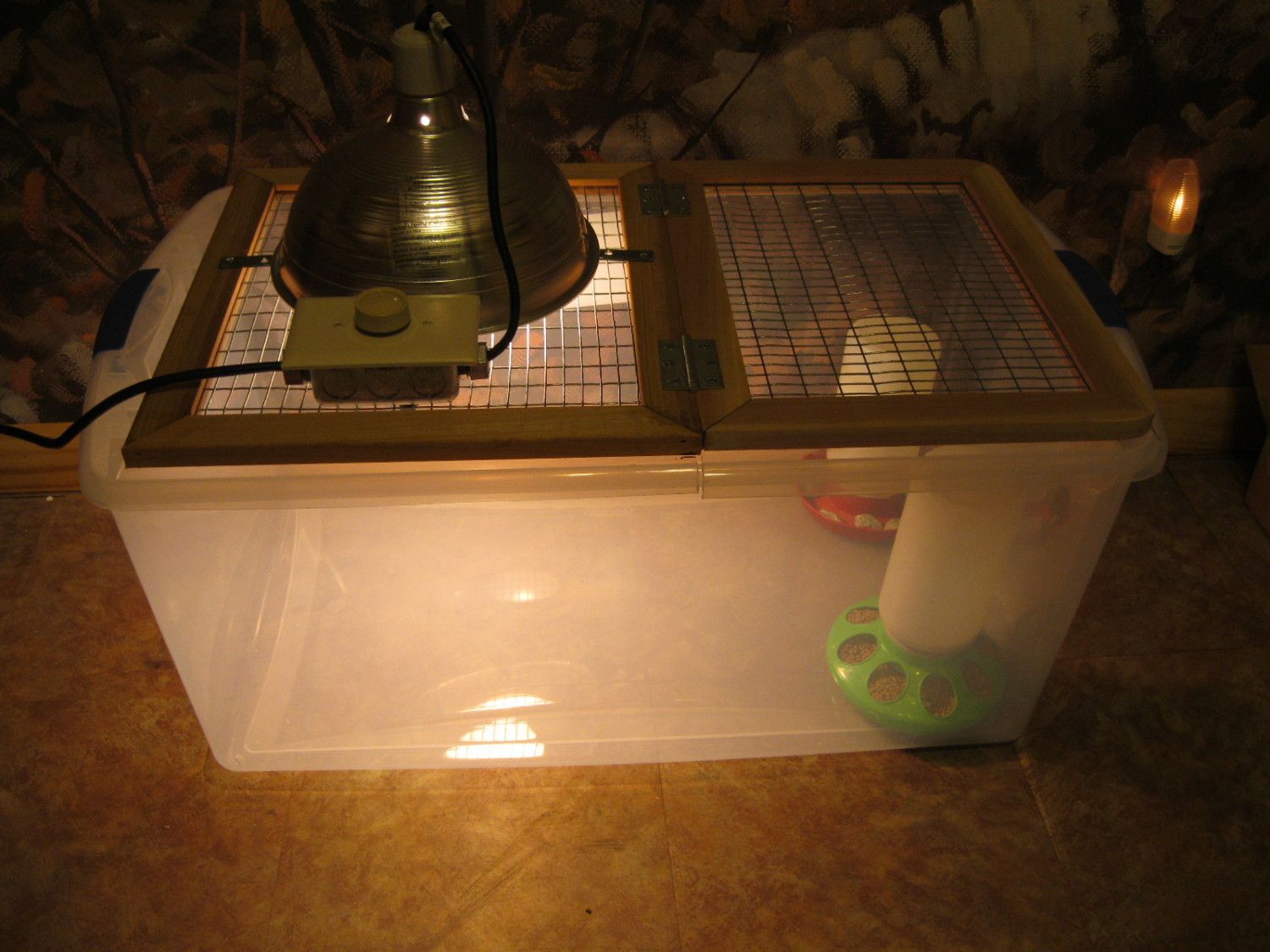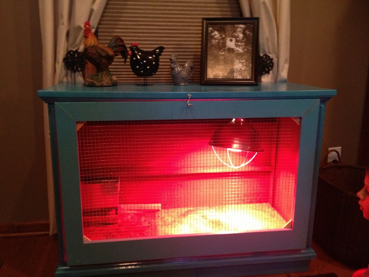 I broke down and got a Brinsea [FONT=Arial, Helvetica, sans-serif][FONT=Verdana, Arial, Helvetica, sans-serif]EcoGlow 20[/FONT][/FONT] so I wouldn't have to risk having a heat lamp inside all of the time.