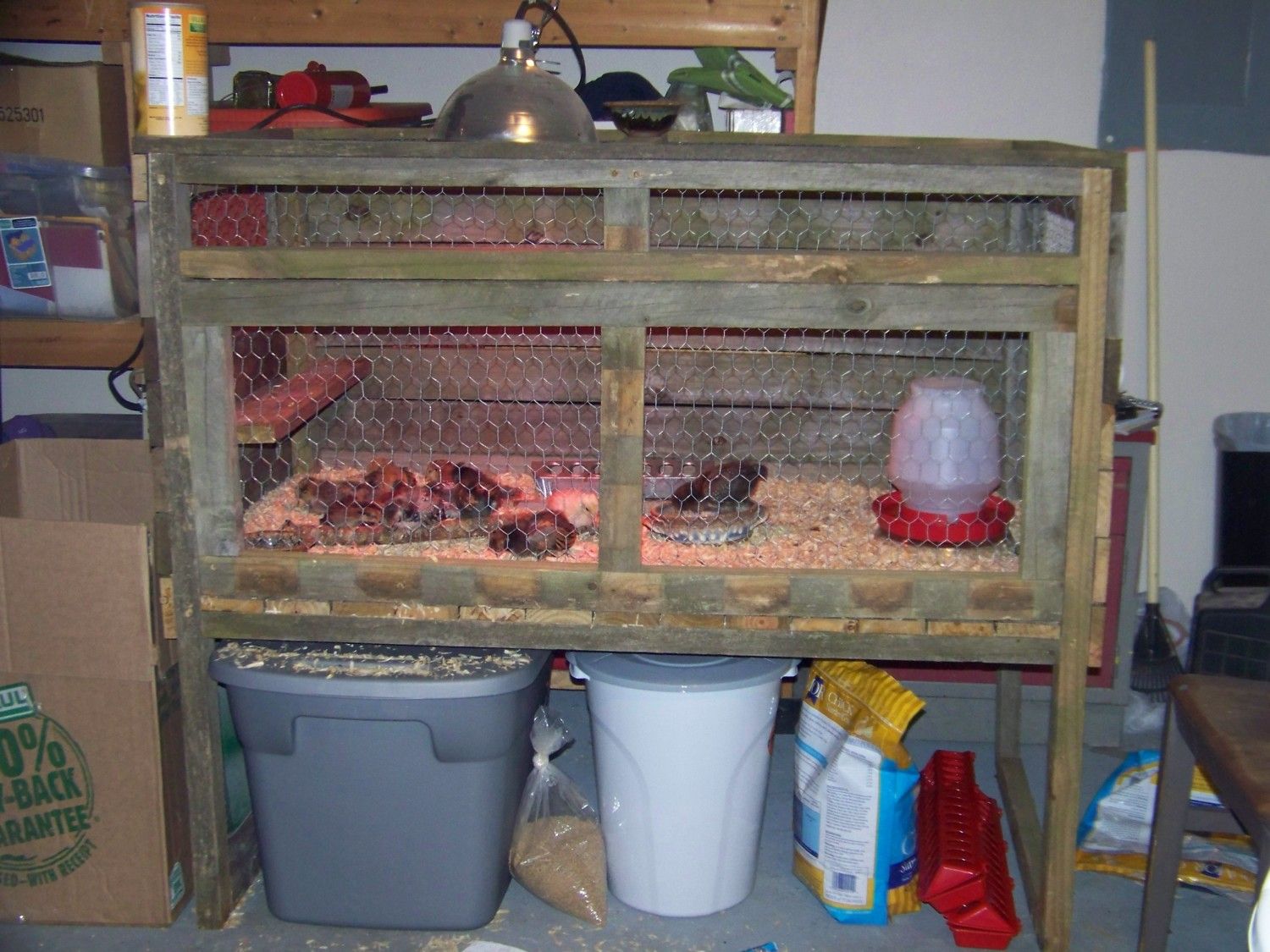 This is my latest brooder I built from pine wood at 36" by 32" by 18" high.