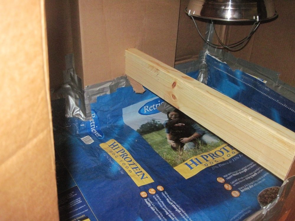 The dog food bag was wonderful. I put puppy training pads over it and pine shavings on top of that. All I had to do was roll the pads up to clean.