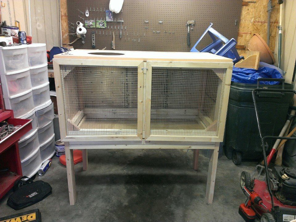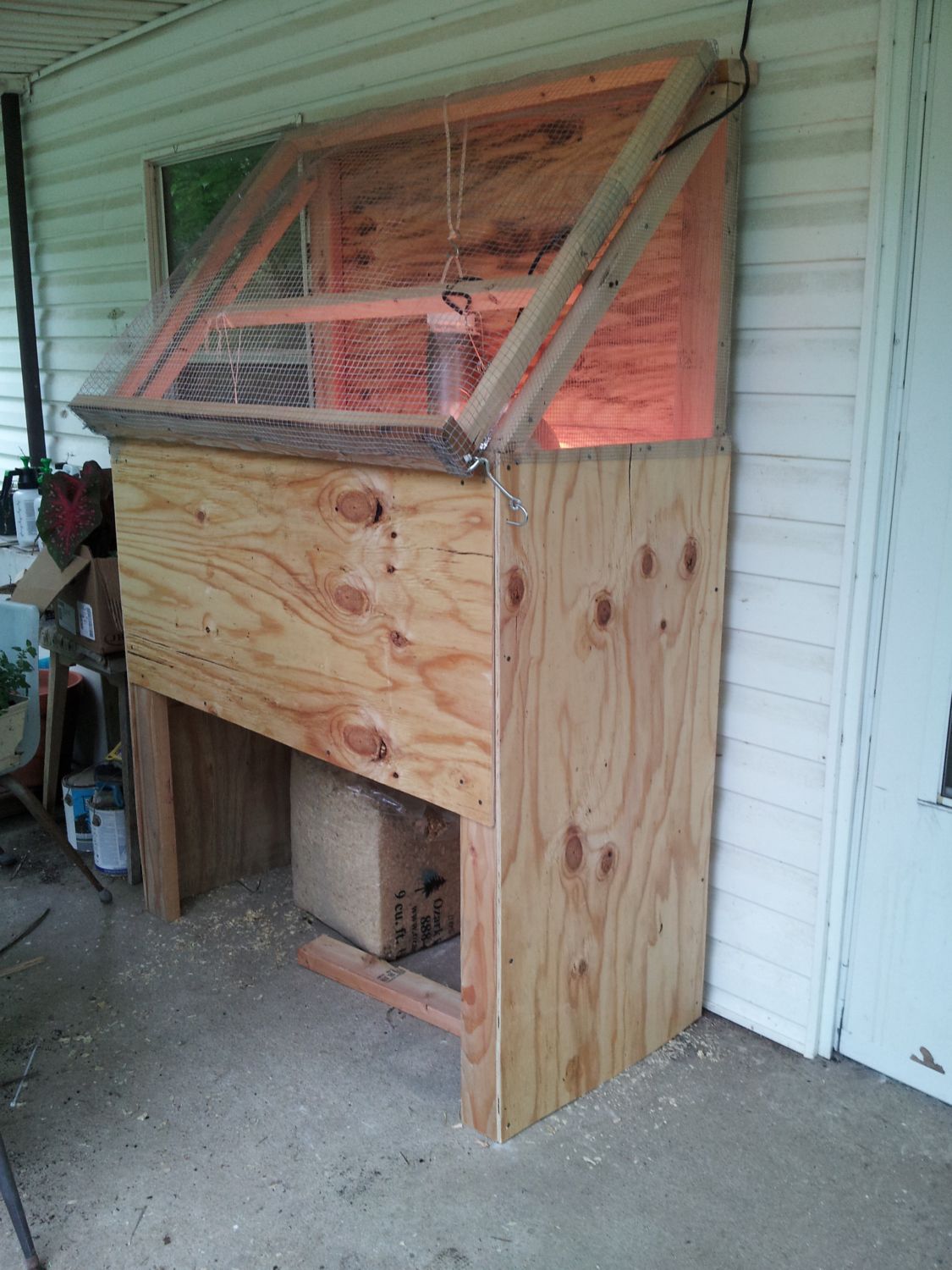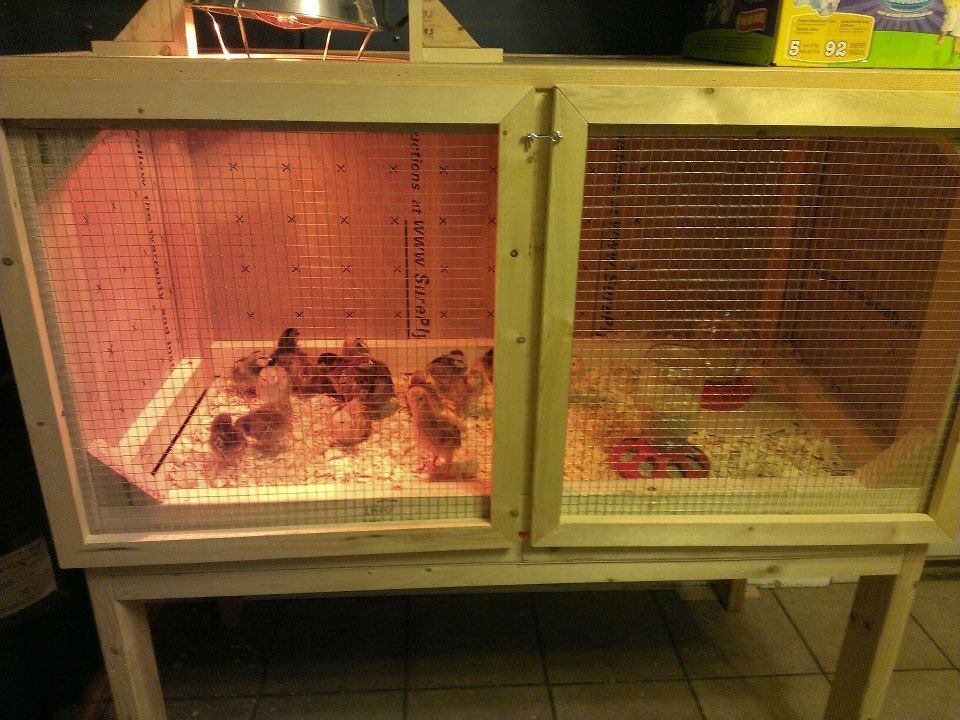 It's my first attempt at a permanent type brooder. I have a few alterations to make for the next one but I like the way it has performed. The bottom is a two piece tray for easy cleaning of the bedding.