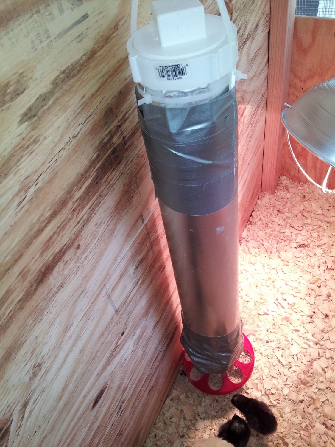 We also discovered that a few of the smaller chicks fit through the square holes, so we fixed it with cardboard so we don't have anyone going kamakazi...and we covered the black plastic in the loft (seemed like a good idea at the time, to cover the cardboard), with plain cardboard, because it was too reflective and the chicks were acting kinda crazy.