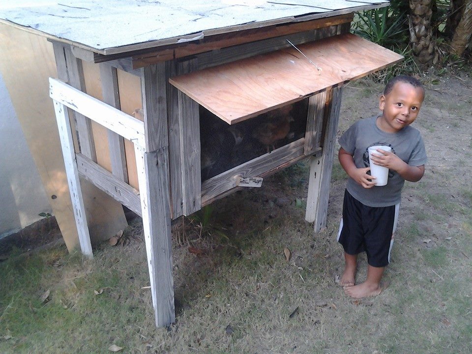 My three 5 week old chicks graduated to the outdoor brooder I made this weekend.