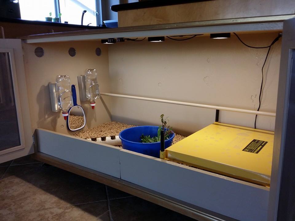 Actually I cut a piece of plywood to block the front.great use of the old cage then! How long til there's chicks?I already had to.Actually I cut a piece of plywood to block the front.