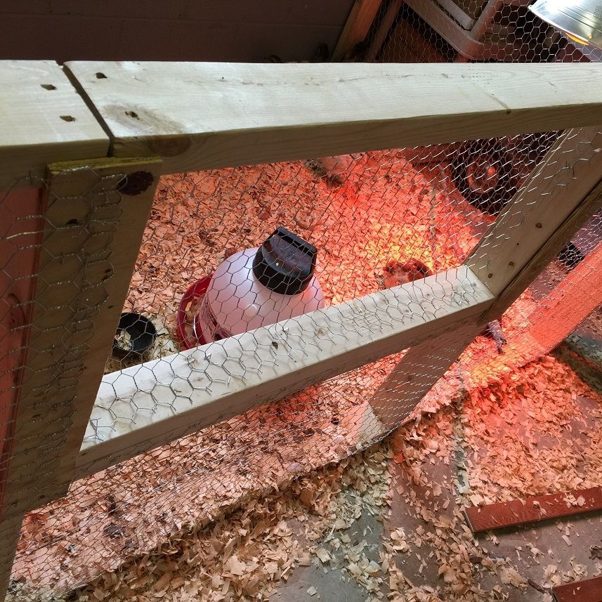 As I am a first time Chick Daddy, any suggestions or comments are welcome. This will be for eleven (11) chicks, one possible two roosters included in that number. I have no Idea what they will be, as they are Murray McMurray choice layers mix plus one Giant Jersey Black rooster (15 minimum plus chosen rooster plus one mystery chick minus the 6 my co-worker is taking off my hands). I will post pictures once they have arrived on the 6th of April.