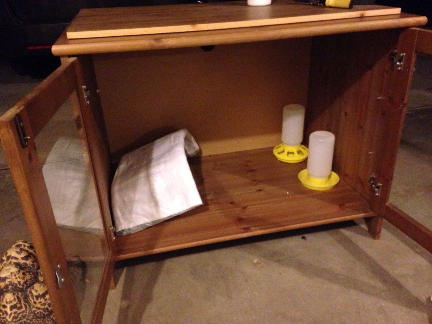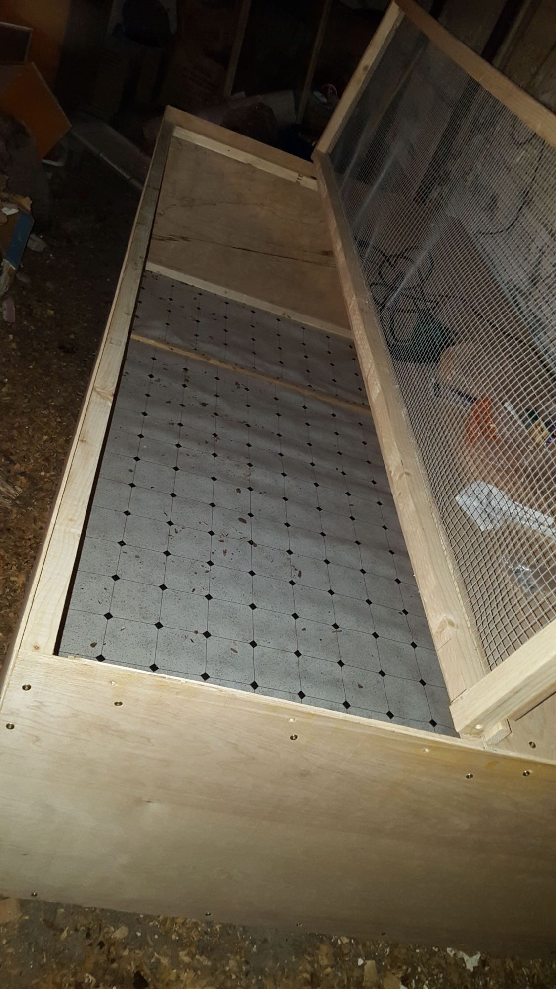@KuroKitsune I like your design, the 2/3 flip door on top is very similar to the concept we went with this winter when we brooded our bunch. And is that linoleum in the bottom for easy cleaning?