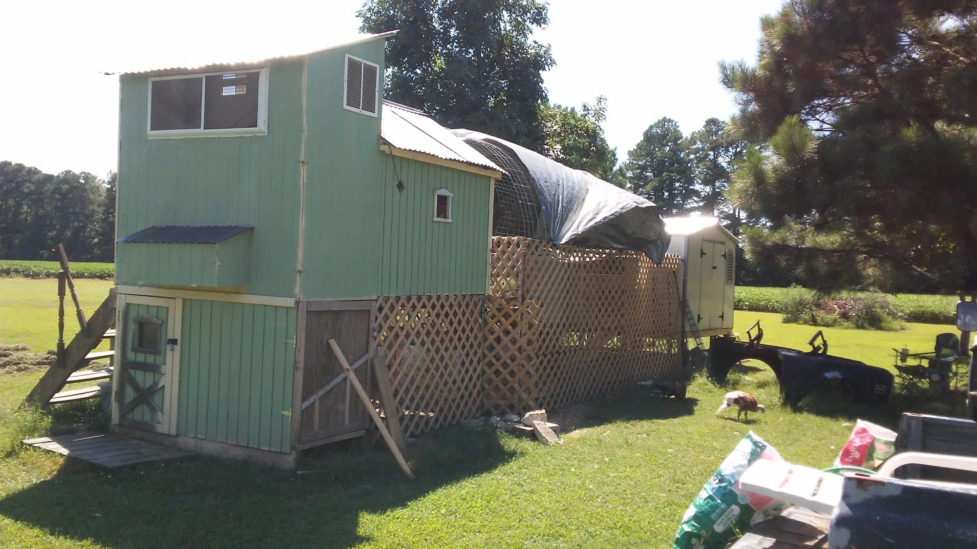 I'm using a wire dog crate as well and we clip towels around the edges to keep bad kitty away, but I almost like the plastic tote because I can use pine shavings in it and none gets on floor. But hard to cover top of the tote to keep cat out. Currently expanding our run and I like the idea of sectioning off a part for babies. Will be 24'x24'for approx 21 birds when done. Plus I let them out a lot to free range. I have a scrap wood pile and I will throw a mini coop together today. Thanks for the ideas!