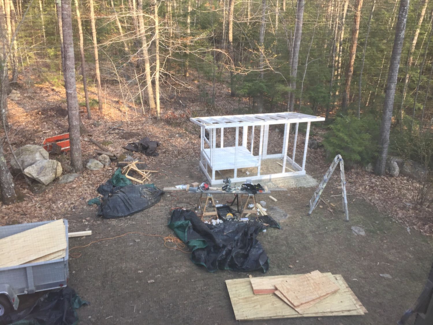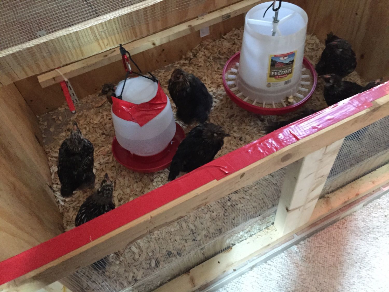 Hi all- we have 9 wyandottes Thad are five weeks old. They are currently in a brooder that measures just shy of 4x4x3. It looks like it is getting a bit tight in there. The coop is not going to be ready for at least a week and a half to two weeks. My husband is building it and I cannot help as I just had a spinal fusion last week. We do not have a garage so that is not an option. We do have an un-heated screen pourch in which the floor is made of hardware cloth covered by wood boards. Would the screen pourch be our best option? The temps are ranging in 50's to unusually high 70's yesterday. Pics of the brooder and coop are below.