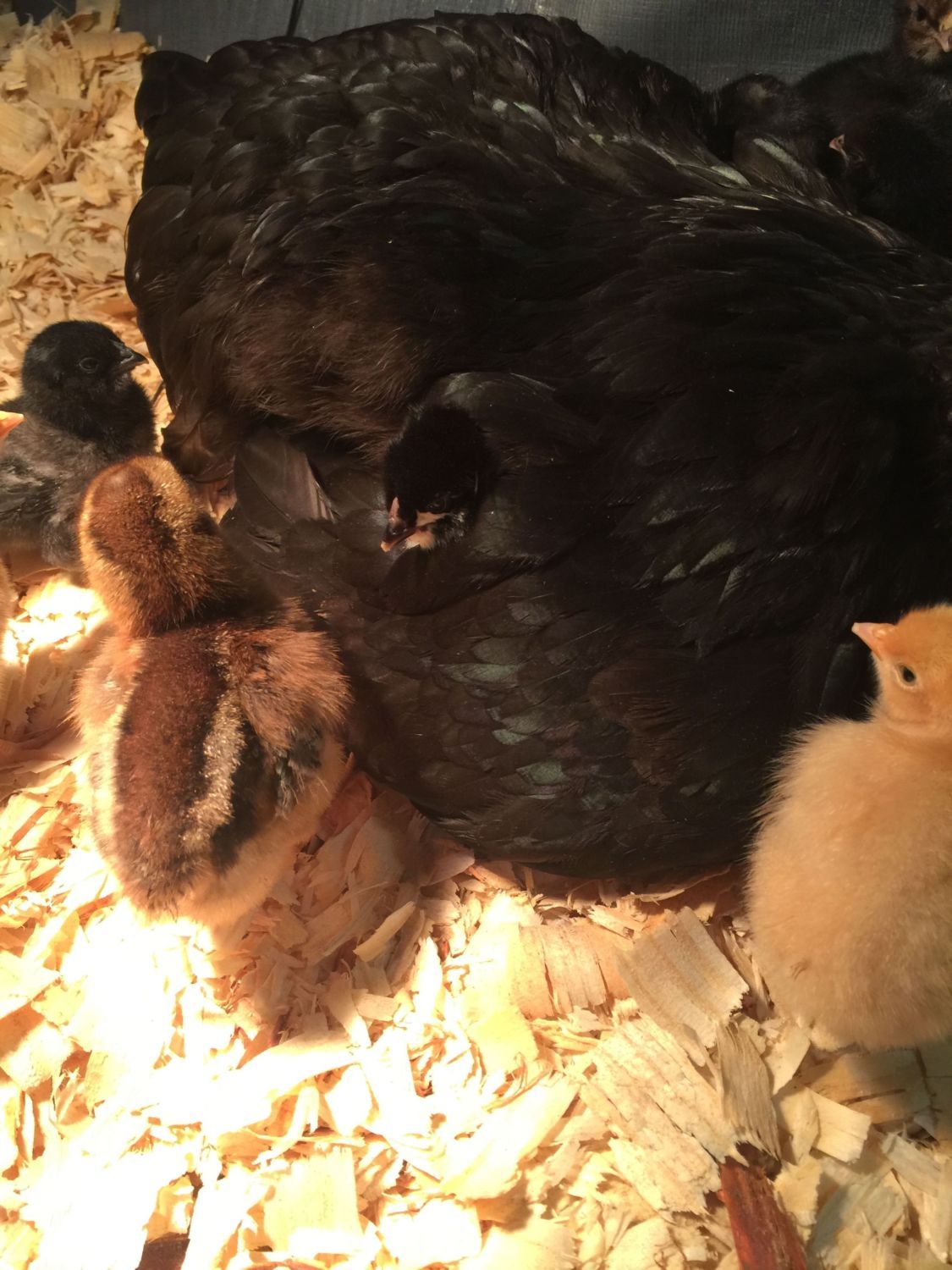 Here are a few pics of mama and her foster kids in the garage brooder.