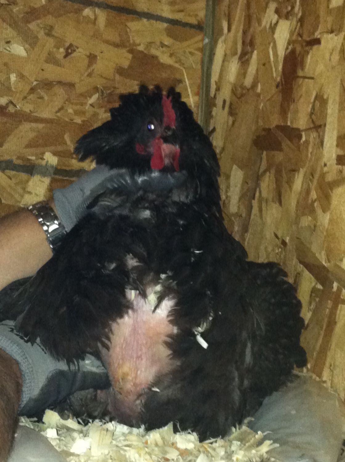 This is one of our broody hens. She has been nesting for several months, but still won't stay on a clutch long enough to hatch baby chicks. Last week we noticed that her breast is bare. Is this normal for hens who are broody for a long time or is this indicative of a great problem? Any advice? Her back is slowly recovering from sunburn and our rooster.