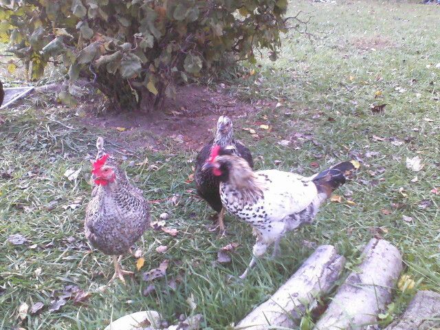 Here they are as a pullet and cockrell with mama. We ended up giving the RIR chick away because a farmer friend had a single turkey chick and they cannot survive without another chick.