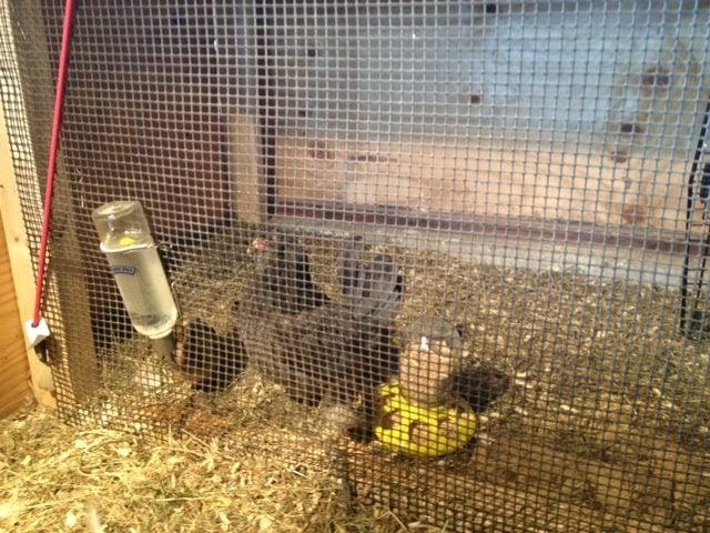 A lot of the other hens have been making nests in front of her screen (you can see a hollow in the photo above), so socialization seems to be happening, which is why I went with the crate/enclosure idea rather than a separate coop for the chicks. Good luck!
