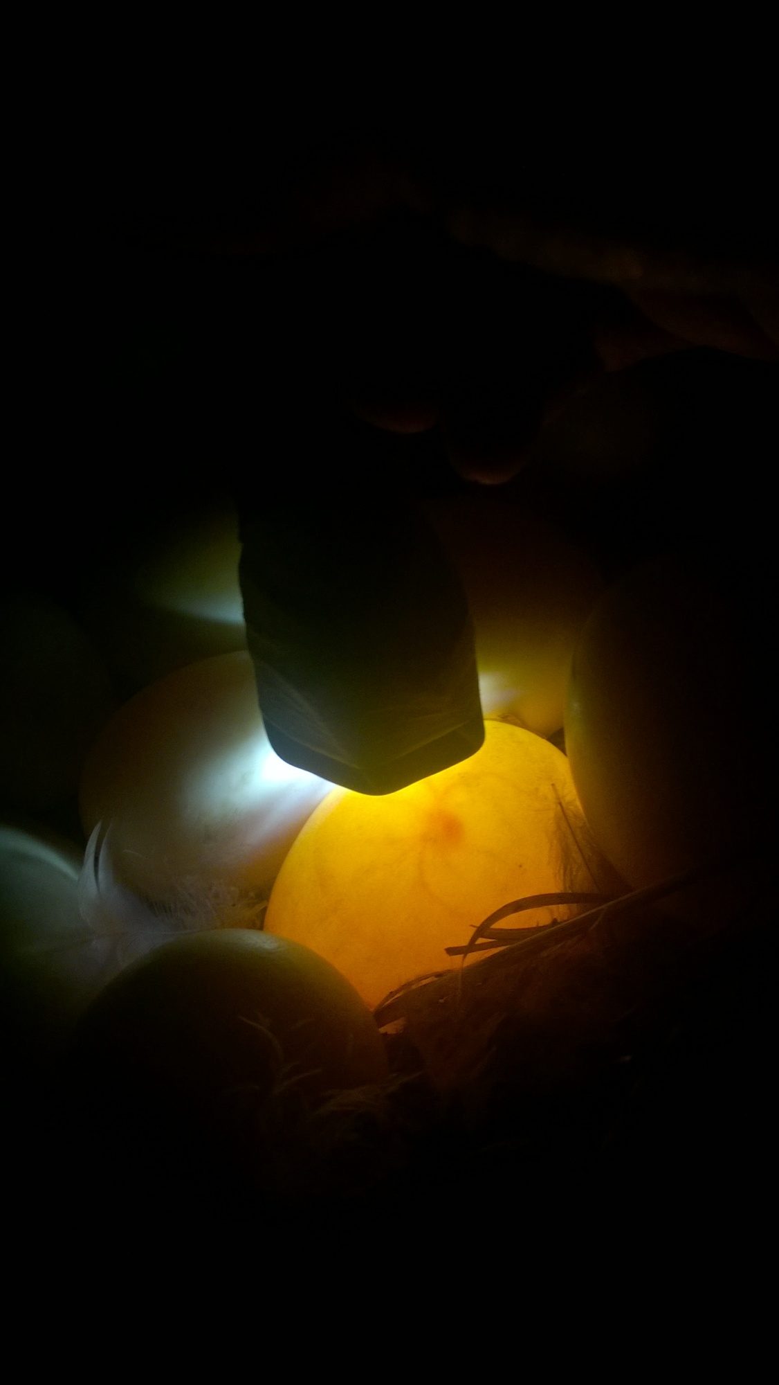I have taken lots and lots of egg candling pics when incubating eggs, but this might be my favorite candling pic ever, because it was my first glimpse of the eggs under my broody duck!