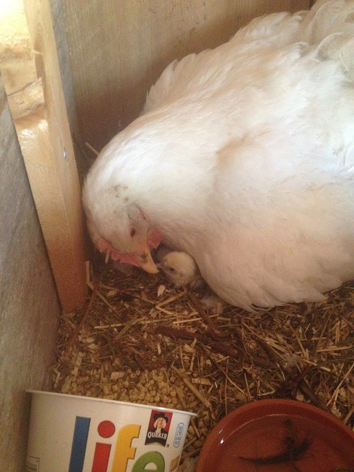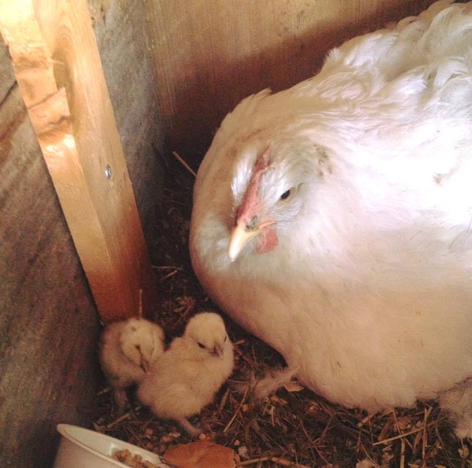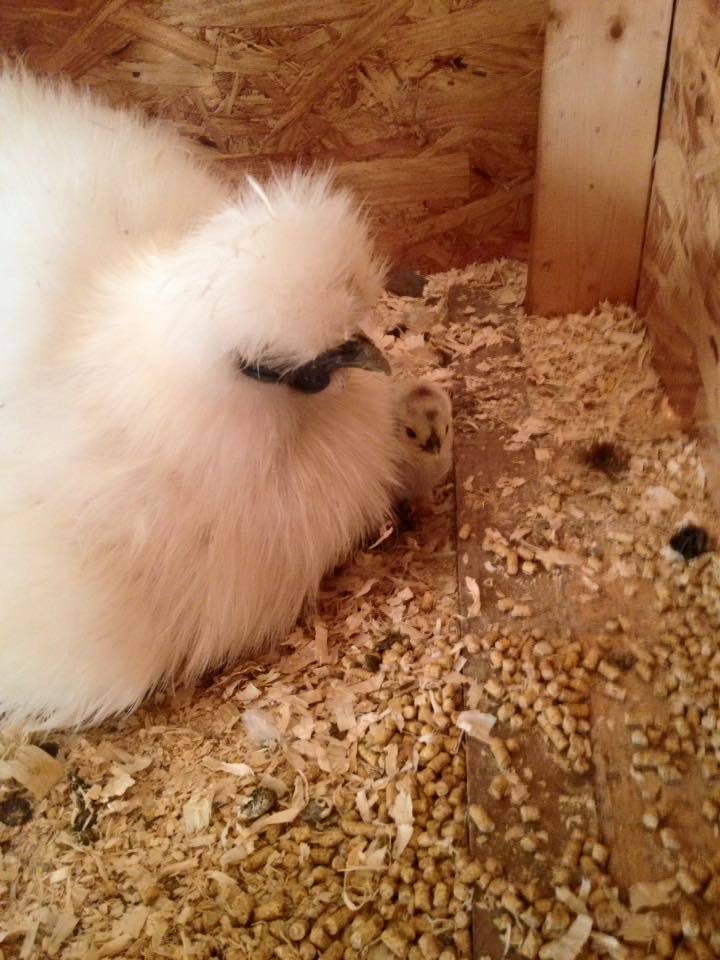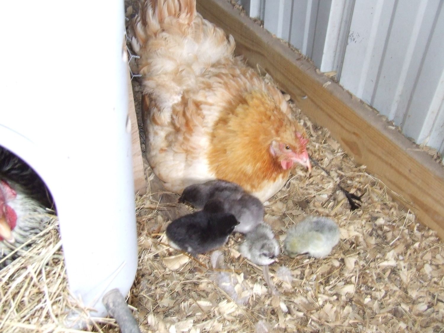 So, I confess, I peeked this morning when I opened up the coop for the day. Aggie is still sitting in the same position that she has set in for the past two days and there were soft peeps coming out from under her. Usually I just do a morning sniff and run making sure there aren't any rotten eggs in the nest, etc. The difference this time is that Aggie has been fiercely protective of her eggs and chicks. No pecking, but she has that I'm a pterodactyl look about her that lets me know that she isn't to be bothered. Moving her and her chicks to their nursery box is going to be interesting.