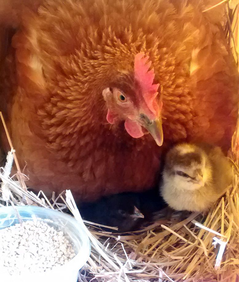 Whooohoo! Day 21. Opened up the coop and checked on mama and saw 3 fluffy little faces peeking out. She is sitting on 8 eggs. Can't wait to see/hear some more babies!