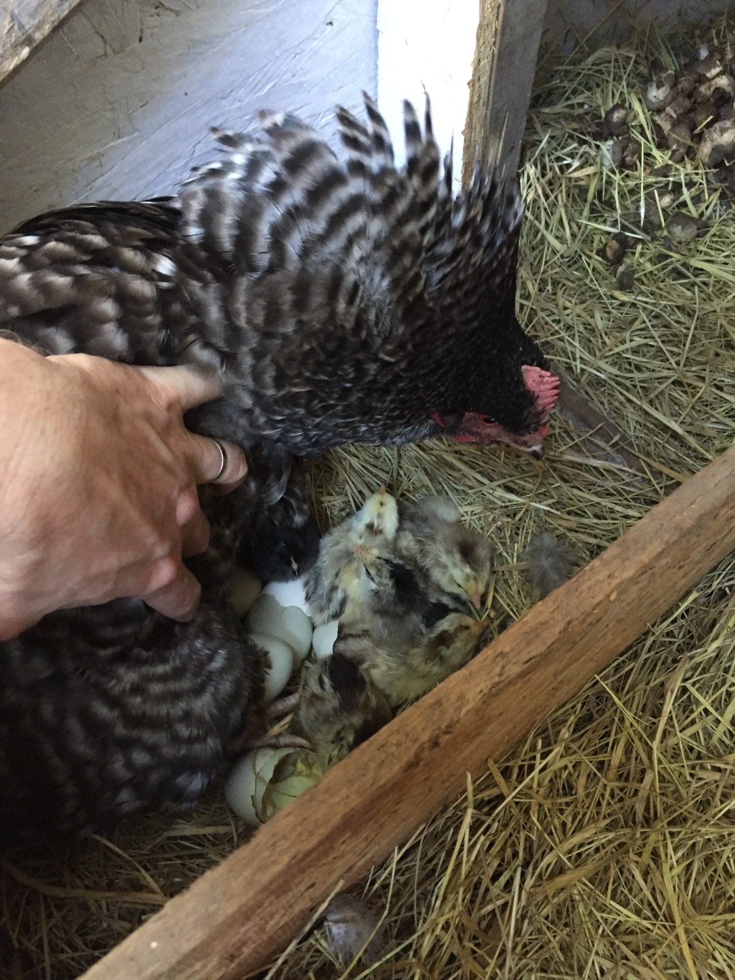 Well, I just had to recruit the whole family to get a chick away from our hen so I could pick off some pasty butt. Husband had a standoff with Mama, I whisked away the pet carrier and dealt with the baby, daughter guarded the door of the coop.