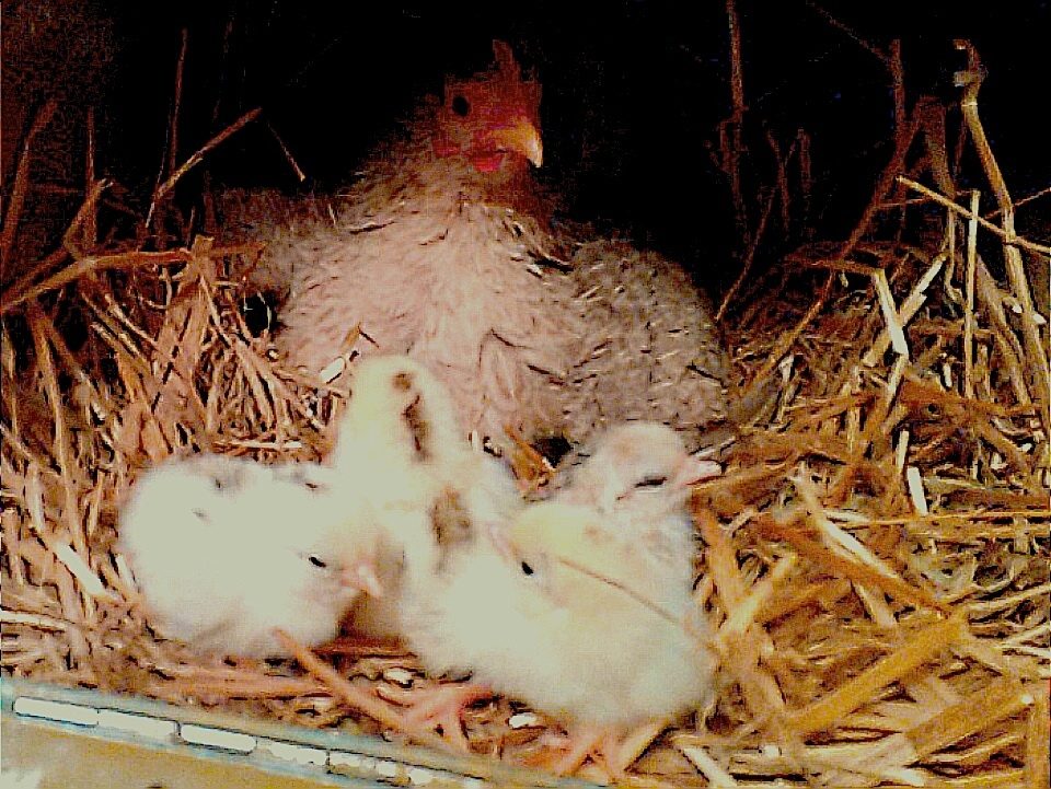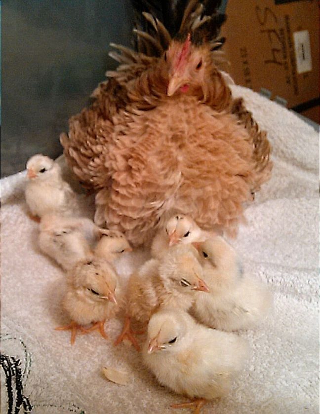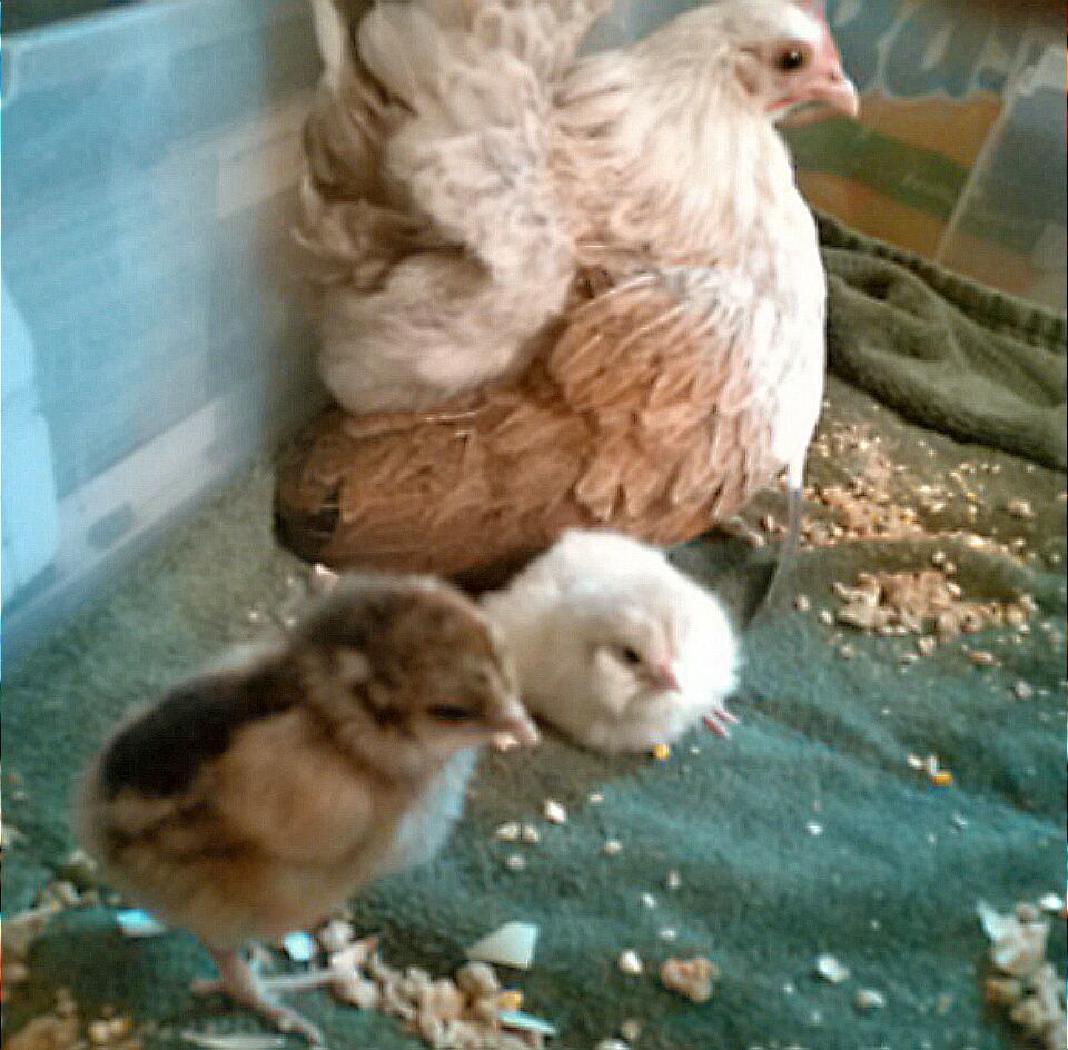 Two are recent. One about three weeks ago. I've two more with new chicks. Four other hens have clutches started and will be brooding soon. Two others, hopefully, will be hatching in a week or so. They are serama. One picture shows my Japanese bantam with a clutch of serama chicks hatched back in time. No shortage of broody hens here. I brought in the house a tiny serama hen this morning who was brooding two EE eggs. One chick had hatched and the other is coming out the wrong end and having difficulties. The wife is trying an assisted hatch; so maybe.