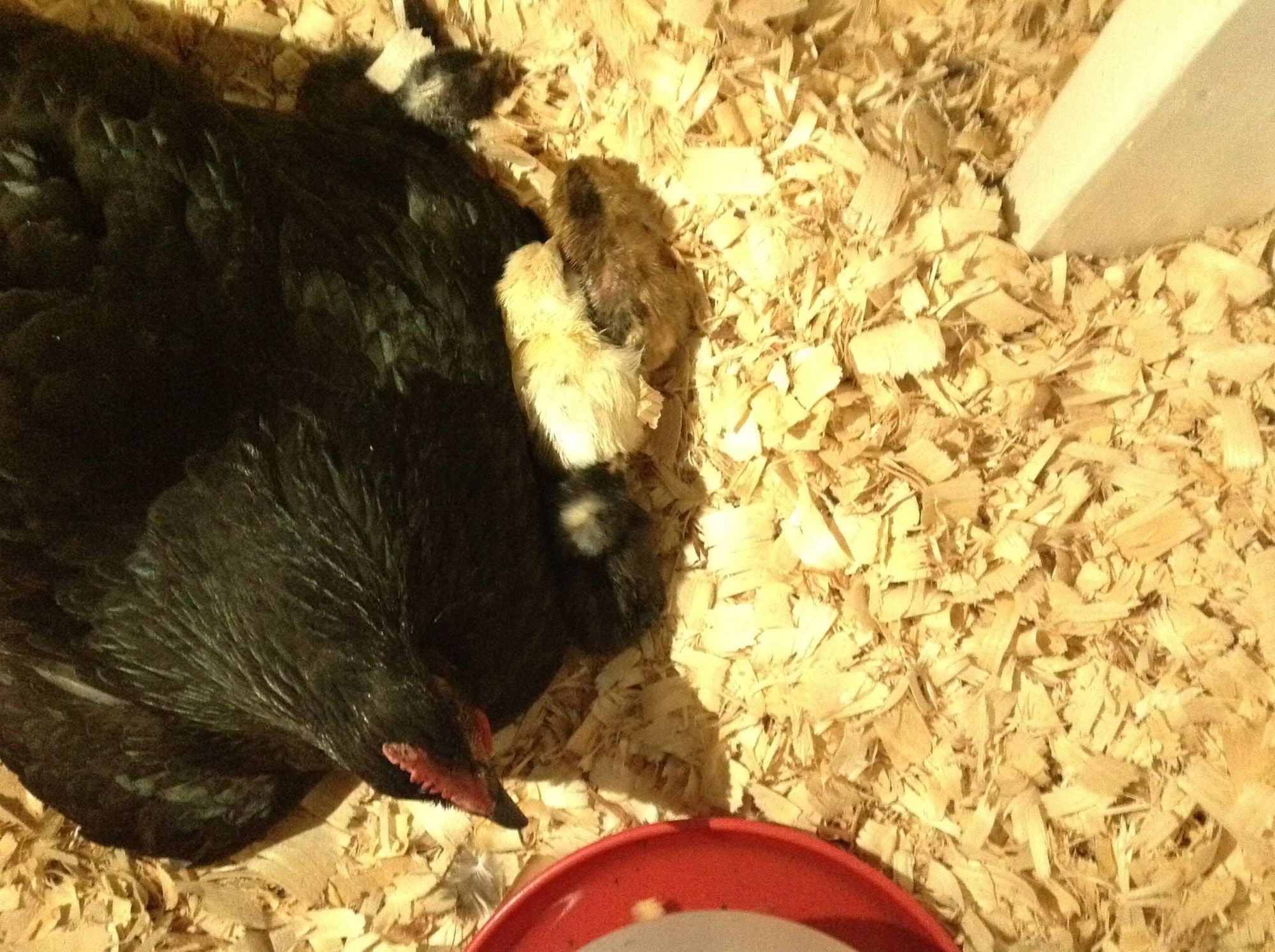 Well I've tried and the hen flipped. She knocked over the eggs, crushed one and knocked over water and food. There is only one chick and I put the water and food nearby. They are in like a tiny mini coop/ brooder. The chick usually stays under mom or near the food which is right by her. So I'm gonna leave the chick for now....