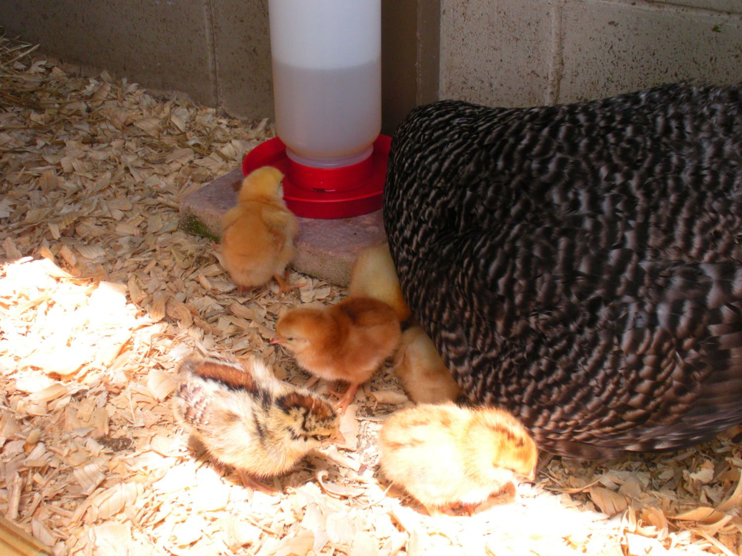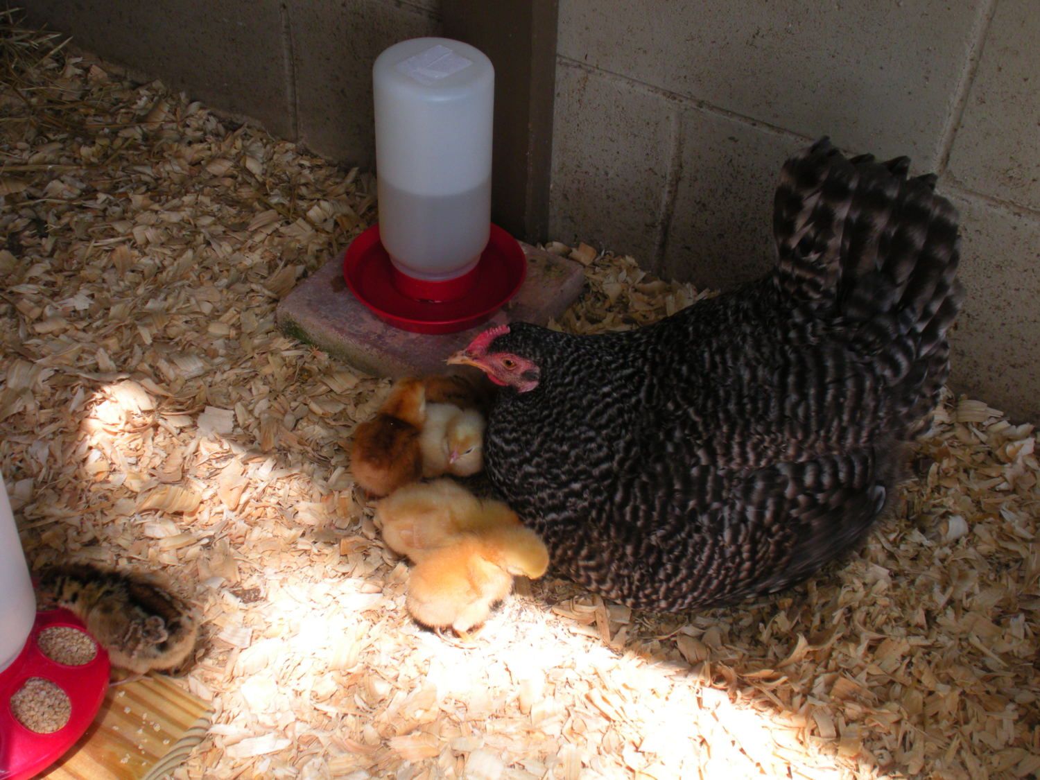 How precious!! Is that a Barred Rock? I'm thinking someday if I get bored with my BO's, I may switch to Barred Rocks. I just think they r soooo beautiful! My kids call them "Zebra chickens". Lol