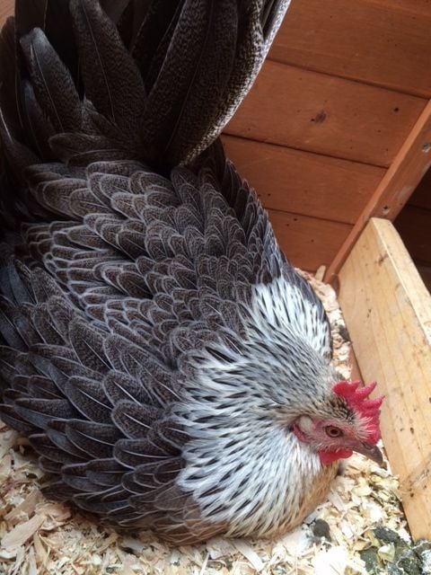 e She is the lowest on the pecking order, and such a sweet hen and she never pecks me when I move her or take the eggs away. I find her in the nest every time I go out, and although there are two spaces for nesting, my four hens only use one. I literally saw one hen hopping from foot to foot, calling her egg song, and when I moved the phoenix the other ran in and laid in egg in under 5 minutes! I guess they will figure it out since I keep hearing egg songs, and she always has eggs under her. Do I just let her get it out of her system? We don't have space for more chooks (although I want them, hubby says NNNNOOOO) And of course no rooster in my city outskirts. Just keep kicking her out?
