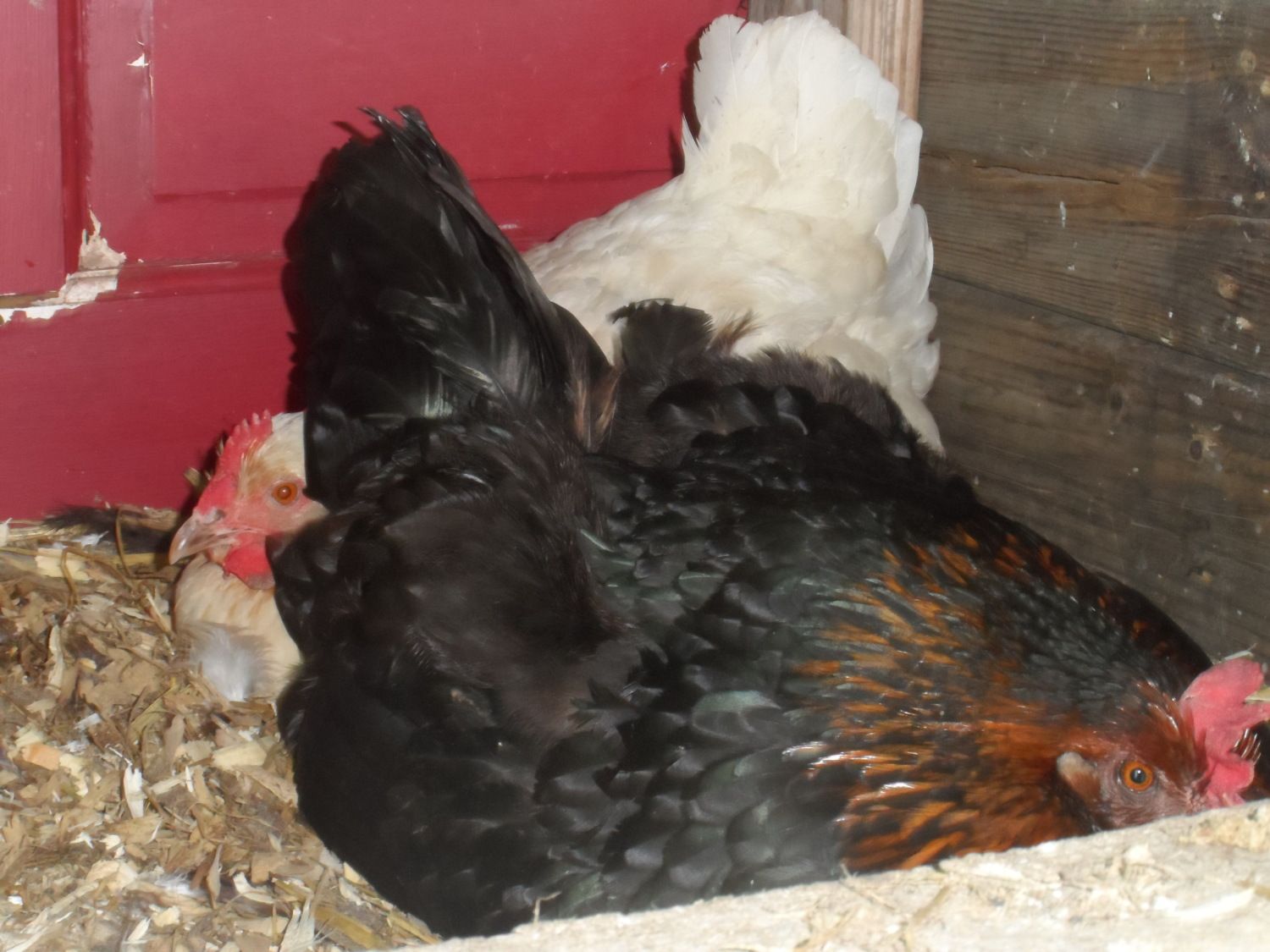 thank you so much for all the tips. We did put in a leaning roost. it's actually an old ladder to the kids' playhouse. my chickens do not roost on it though. we have another roosting bar they prefer to use. they use the ladder just to climb up and down when bored or to go in and out of coop! these two hens are actually my most dominant so maybe they will be extra diligent at protecting them. the others are very docile so I will just keep a watchful eye when and if any hatch. I think I will also get that half tent going! thanks again!