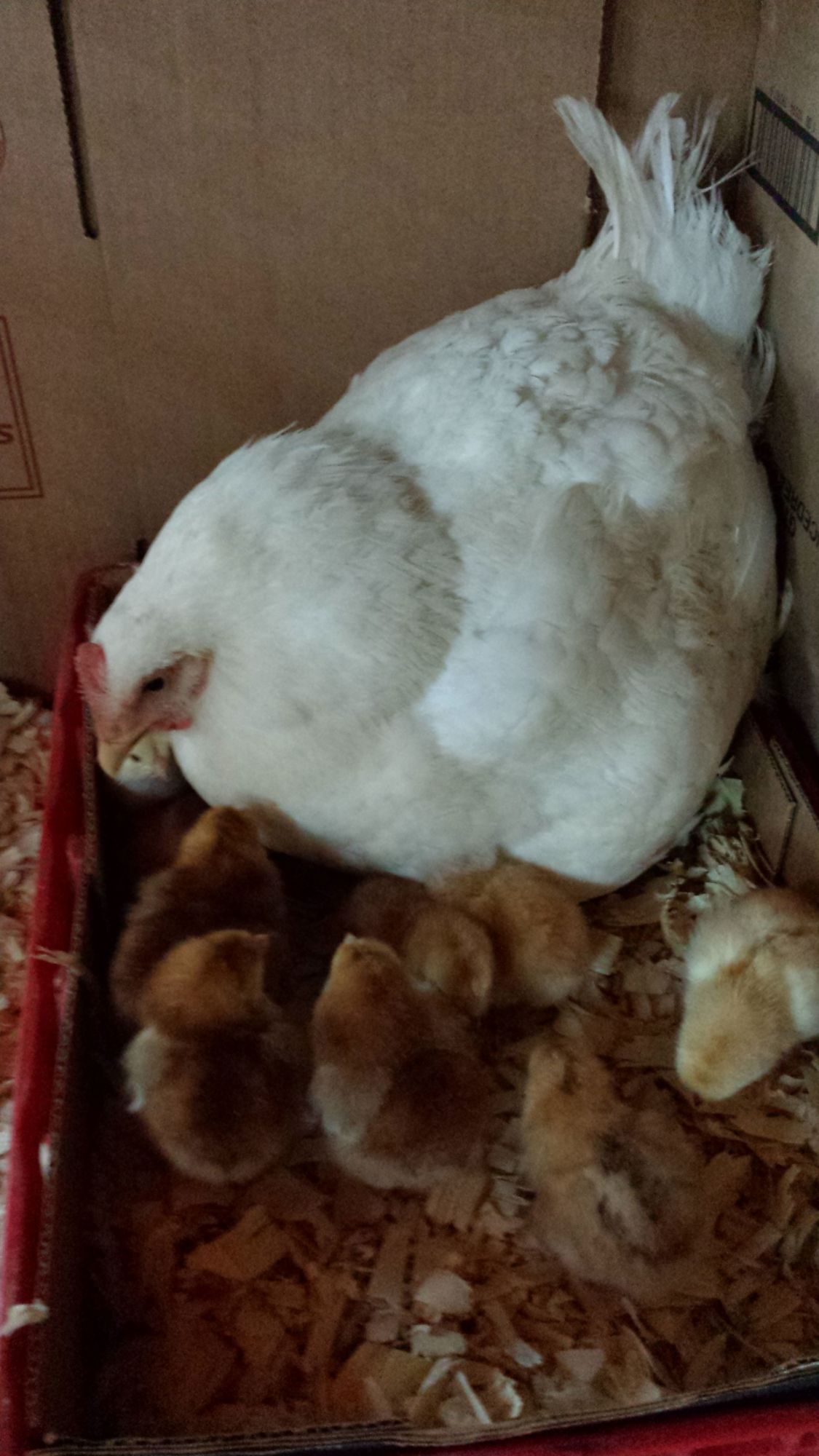 I had a successful hatch with 1 of 2 of my broodies. The White Plymouth Rock was nearly perfect. Clean nest and hatched 10 out of 12 eggs--she exhibited broody behavior and I set her aside in a large dog pen and the next day she was still committed so I put 12 fertile Buckeye eggs under her. I only candled a couple of times and new the two that were duds ahead of time and removed them. She kept her nest very Clean--then I had an Australorp that went broody the same time and did the exact same things with her--except she did not keep her nest clean--and I think bacteria killed all of her eggs, I tried keeping the nest clean but it seemed futile. She also started eating her eggs I think because they started disappearing. She hatched no eggs. In fact as I removed the final eggs many of them were rotten--Here's a pic of the happy mama and her babies: Any ideas on what went wrong with the Australorp? The eggs should have been identical in quality and fertility--same bread and collected at the same time, etc. I am going to let her raise them--how long should the chicks stay with her? Thanks!!