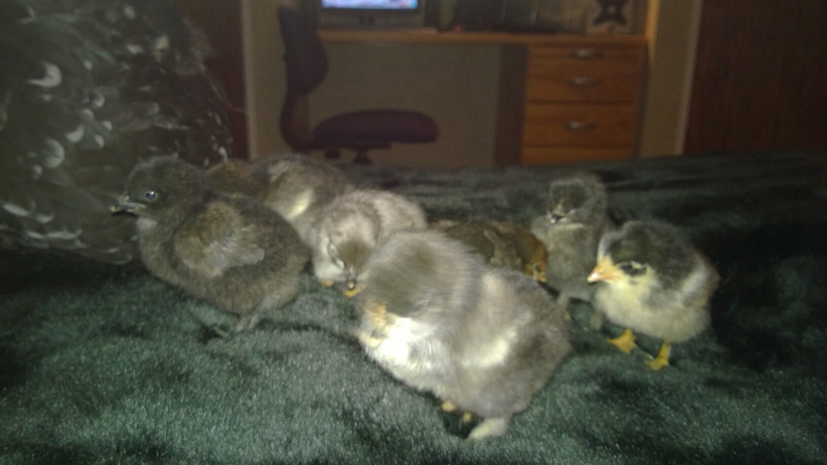 They are like a barnyard mix. One of them is an EE. There are 4 with feathered legs and the others are normal chicken.