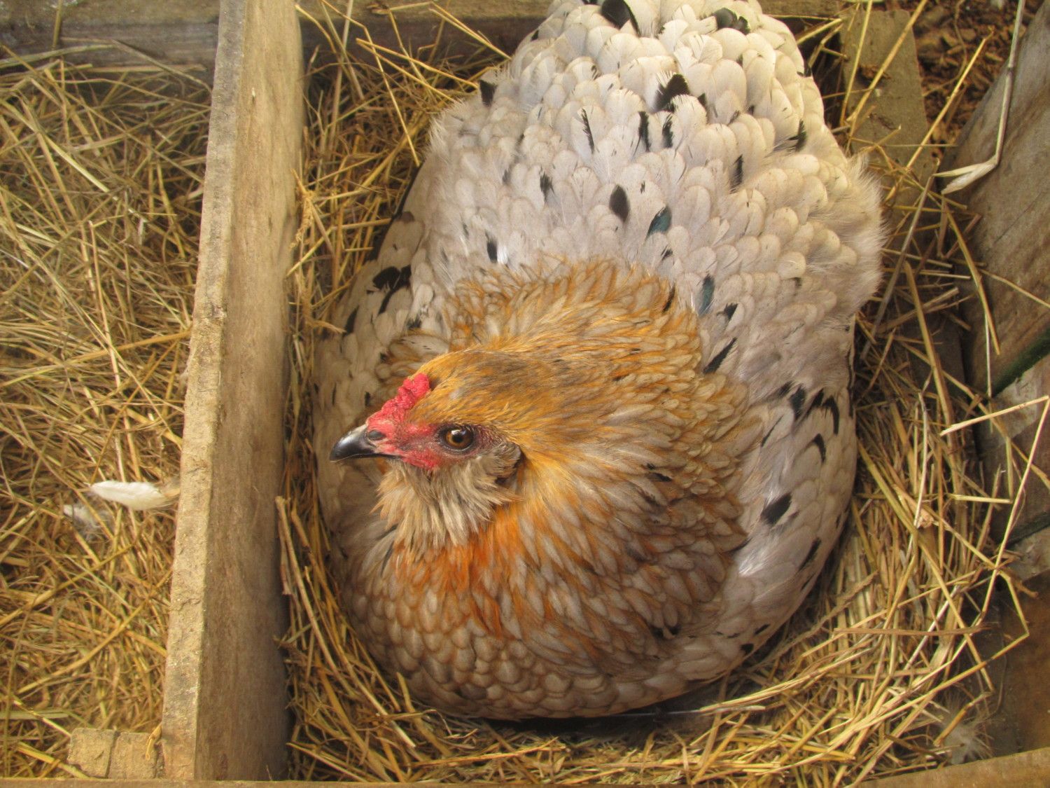 So I found my two missing hens today... both under a board, sitting on eggs side-by-side. I figured something had gotten them when they went missing, even though we've never had much problem at all with predators. I'm thrilled to find them both alive and well, and hopefully they will end up being better mothers than the last hen!