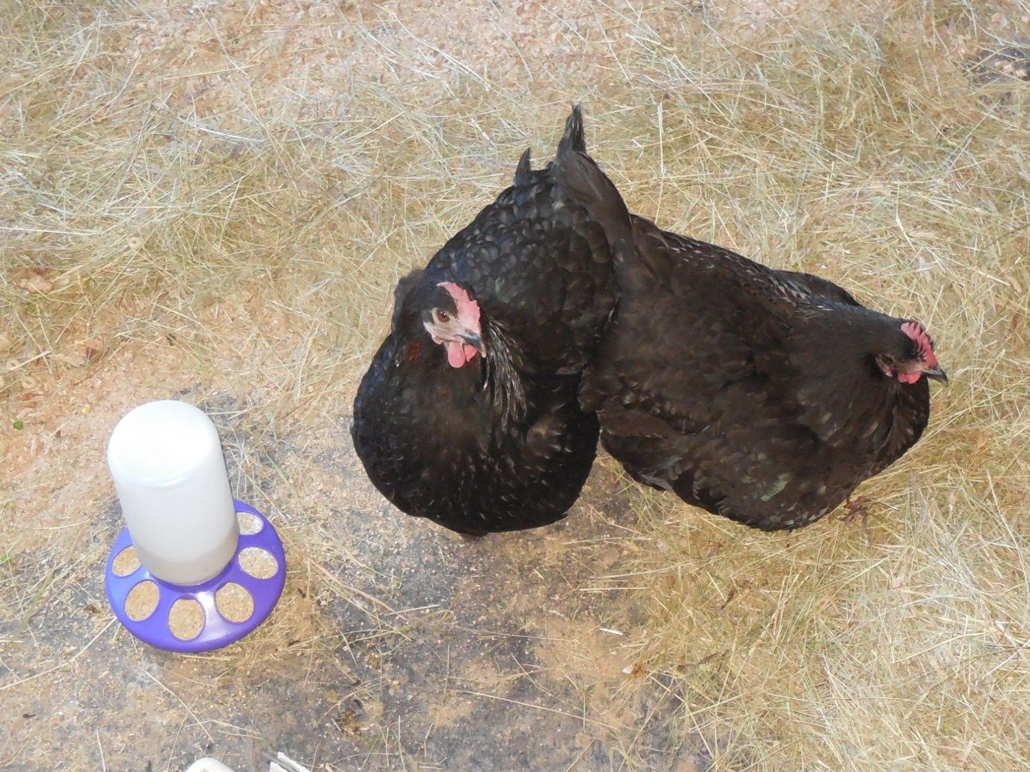 BCM and Australorp hiding their 9 chicks together in the duplex.