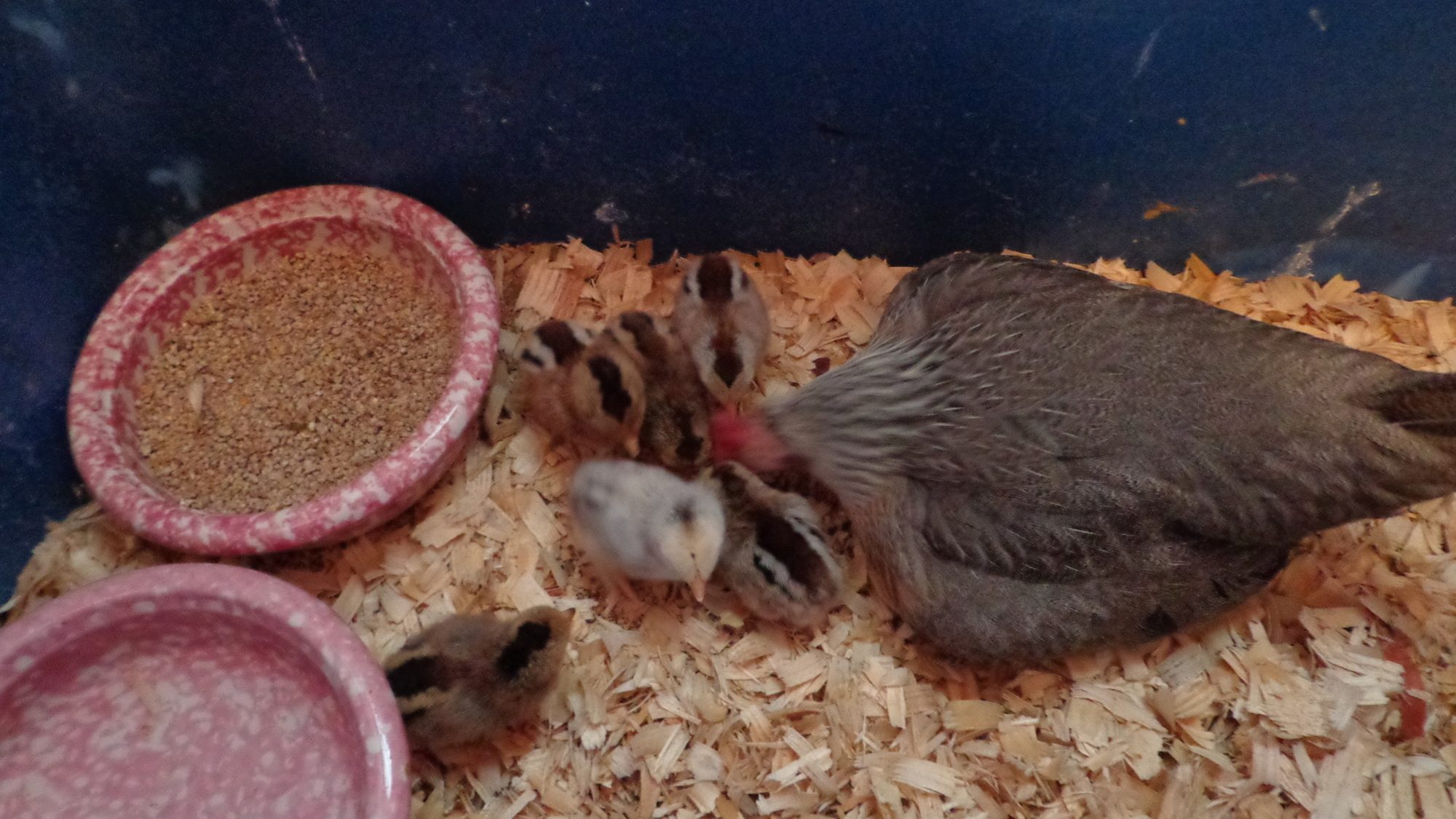 I have an OEG hen that has tried for the last year and a half to be a mom. She has tried in the coop twice and abandoned her eggs both times after a week or two. They usually stink to high heavens and are gross. Then she decided to be nature girl and go wild, took off to the neighbors horse pen, laid 7 eggs and was roughing it. We thought she had been taken by our pesky fox who likes to hit my coop every so often, but nope she shows up after a week of being gone. Well, we let her do her thing and then watched where she were she went after getting food and water. Found her nest in the horse paddock. It has been pretty rainy for August and she was soaking wet, so I had my son get a tote, put in some shavings and we brought her and her eggs into the house, put her in the tote with a screen top and she threw a fit. So I took a towel and covered her up for the rest of the day. She finally calmed down and decided that this was safe, dry and comfy. She has a nasty habit of making the most disgusting poop messes and one day did this all over her eggs. Well we had been gone for the day and when we arrived home the poop was dried and covering all the eggs. So we took them all, washed them in warm water and scrubbed them with a steel wool pot scrubber like I use on my cast iron pans. We dried them off and cleaned her up, put the eggs back in and hoped for the best. Well as of this morning 6 of the 7 have hatched and the other is moving around and faintly pecking. They are so cute and all appear healthy and happy. She is over the moon happy to be a mom at long last. : )