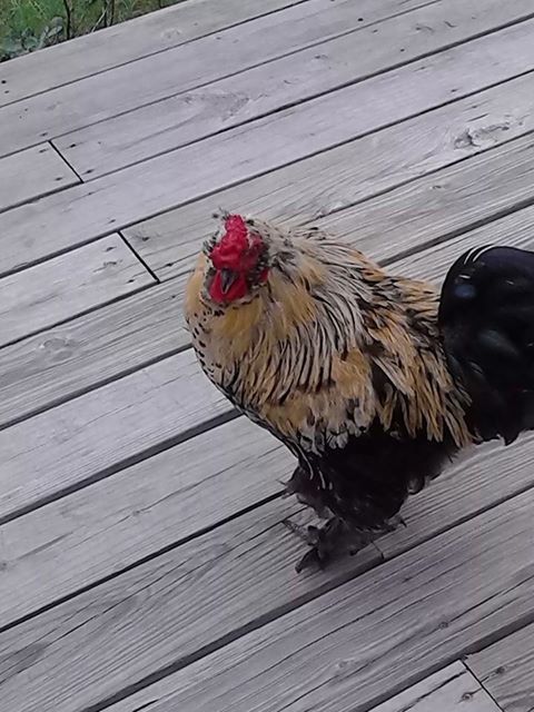 This is Hank, he is the father of No Name & Puffles. Hank is 1/2 Silkie & 1/2 Buff Orph.