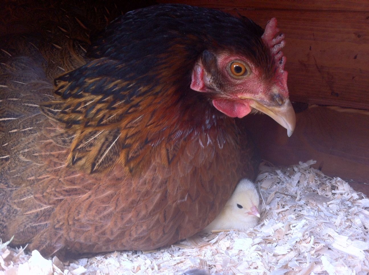 I was wondering if anyone also adds a heat lamp to their broody box for when the chicks hatch since weather is still pretty cold. She is a first time broody and has 3 developing eggs under her, I pulled the clears this morn. She is due to hatch this sunday and weather is still pretty cold she is an unheated garage.