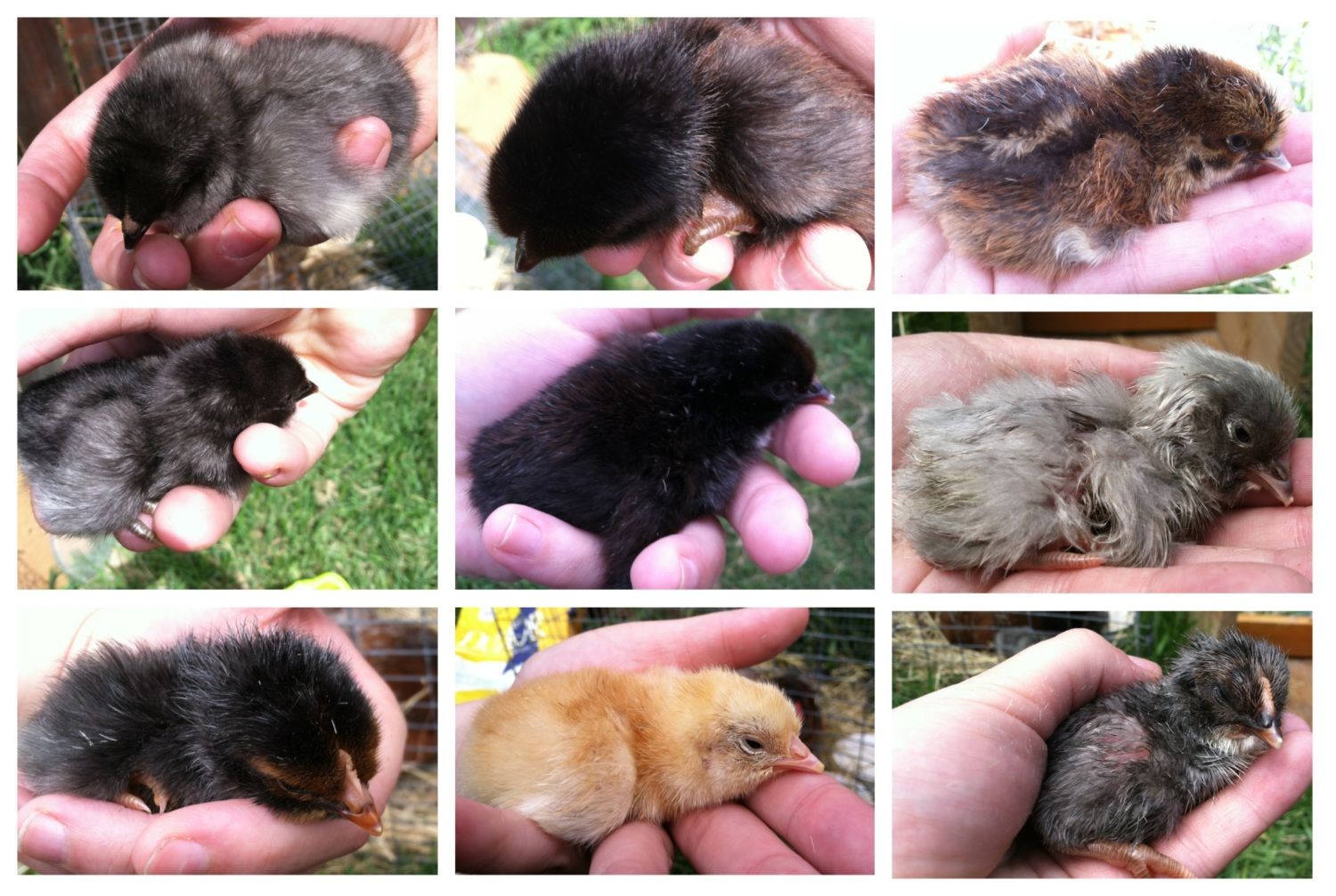 Hi. I just had my first broody hatch out 5 chicks 3 days ago. I gave her 5 fosters 2 days ago. All are doing well. I had a partition up so the chicks couldn't wander far but the hen could get over it. This morning, I went out and found her chicks peeping and her tucked in on another nest of eggs. I removed the partition and moved her but she went back to a nest with eggs. The chicks are staying with her. I actually removed the eggs and stuck some golf balls in and she was happily sitting there with babies and balls. I did find her off of the nest, dust bathing and scratching a bit later in the day, with babies in tow but she is now back on the golf balls and babies. She growls at me, like she did when she was setting, whenever I go out regardless if she is on or off the nest. She isn't acting protective towards the other hens. Is she really wanting to go broody again? She isn't in great body condition right now. Again, this is my first time with hen hatched chicks so any advice is appreciated. Thanks. Realized I didn't post a pic. Here's a few of the babies. There are 5 JG or JG/BO cross and 5 black JG.