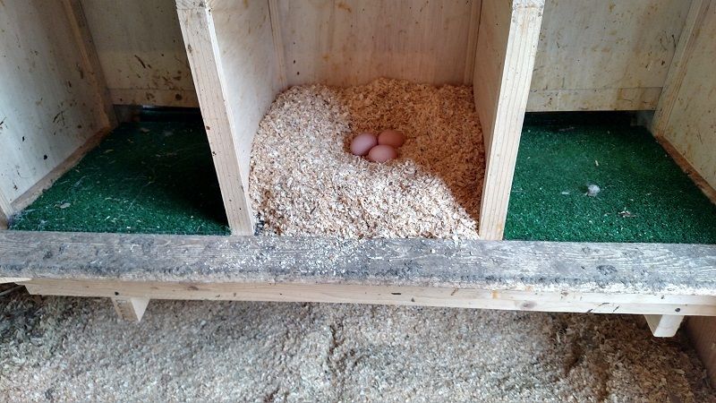 Started an experiment. Lifted up one of the roll-out trays so that it was level, filled with shaving and a few eggs. Hoping one of the girls decides to cooperate.