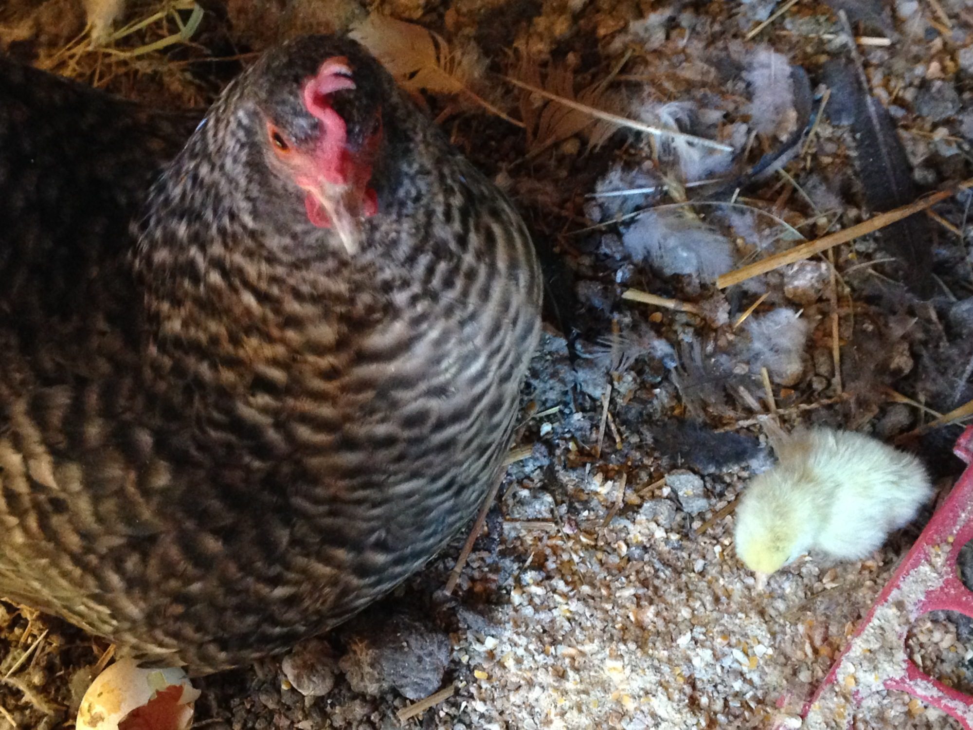 Hi all. We have a young bantam hen who became broody recently, so we let her set. She had 6 of her own eggs under her and I tucked in 2 full sized eggs for fun. *I did NOT mark on the calendar the start date so I really have no idea how long she's been sitting, but I do know this week sometime has got to be 21 days.
