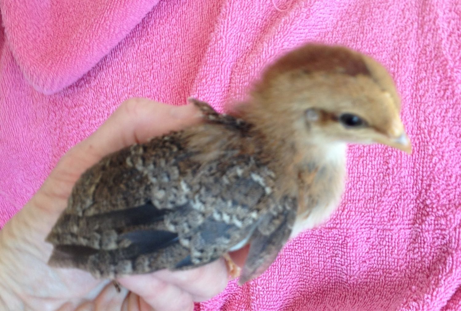 About 22 weeks old and just laid her first egg. Super flighty birds. Why don't the like me?!?