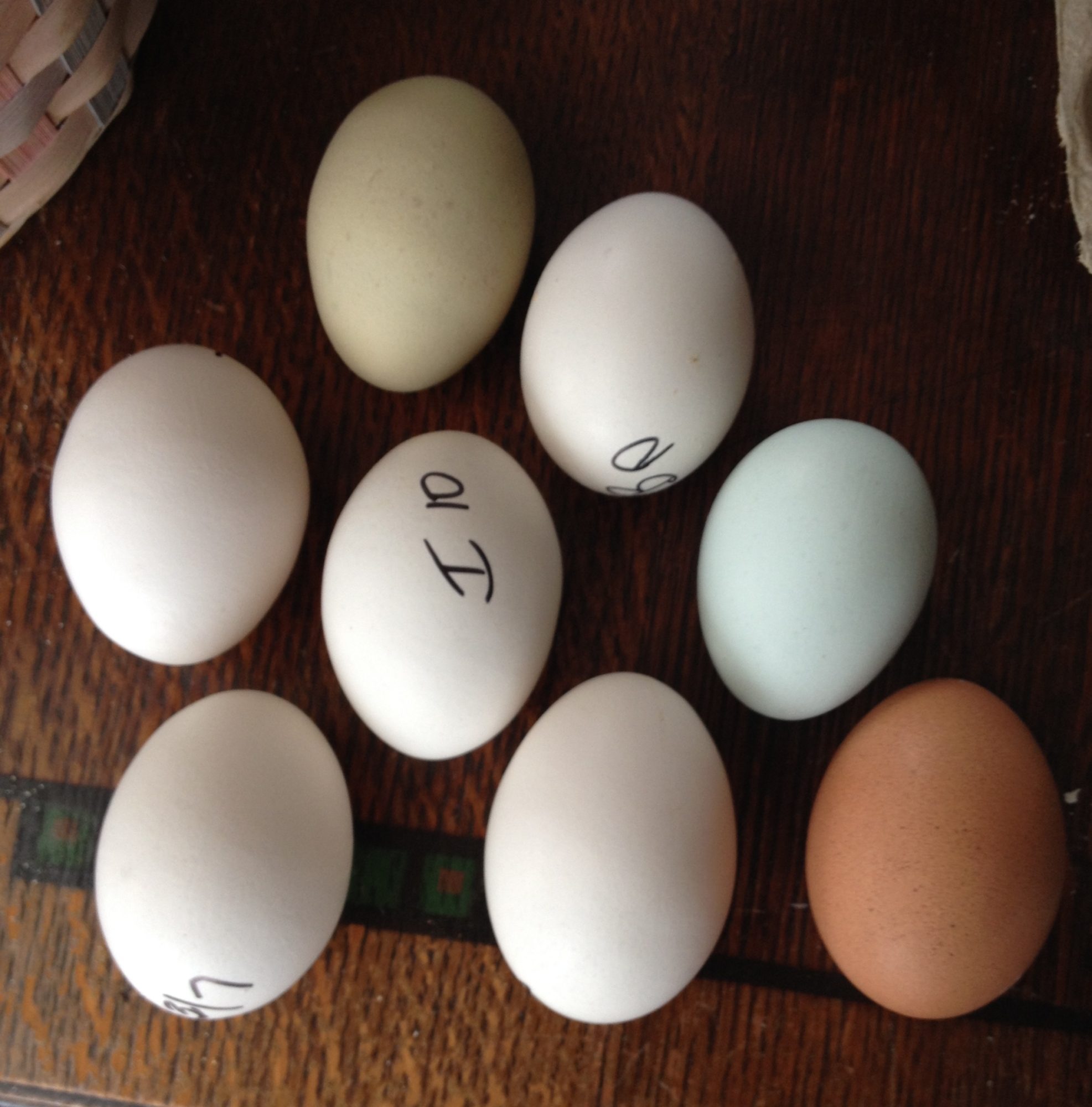 Good to know not all of them lay smaller eggs.They say a picture is worth a thousand words. In the lower left hand corner are 4 isabelle leghorn eggs. On the right hand side is an australorp, an EE, an DBL and an isbar. I fine them to be large. One hen occasionally lays a smaller egg, but not every time. That is her egg which is second from the bottom on the left side.![]()