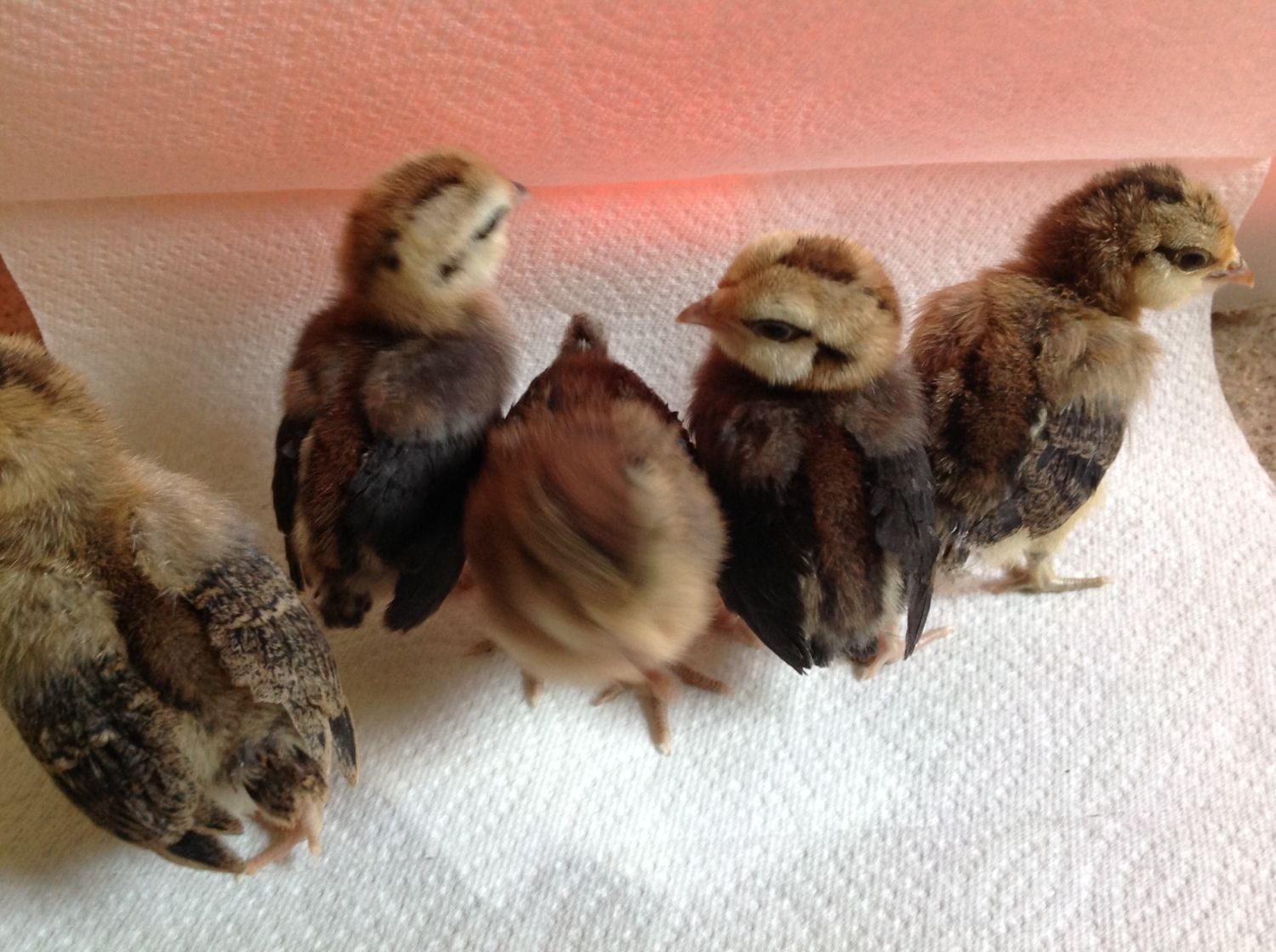 I couldn't find a breeder of browns so I ordered from MM so I could get something going - better than nothing. I figured I'll work with the hatchery chicks until I can find a breeder one day. Gosh, that's a shame about your white leghorn rooster. Any idea what he died from?My chicks were darker chicks. They looked more like the darker chicks in the top picture and the chick in the bottom picture in the front. The didn't have the chipmunk markings. It looks like I may have the dark brown leghorns after all. That is what I wanted but had a very hard time finding browns. Now I need a new white male to go with my white girls. I recently lost my white male. He was fine one evening when I checked the birds the next morning he was dead in his coop.
