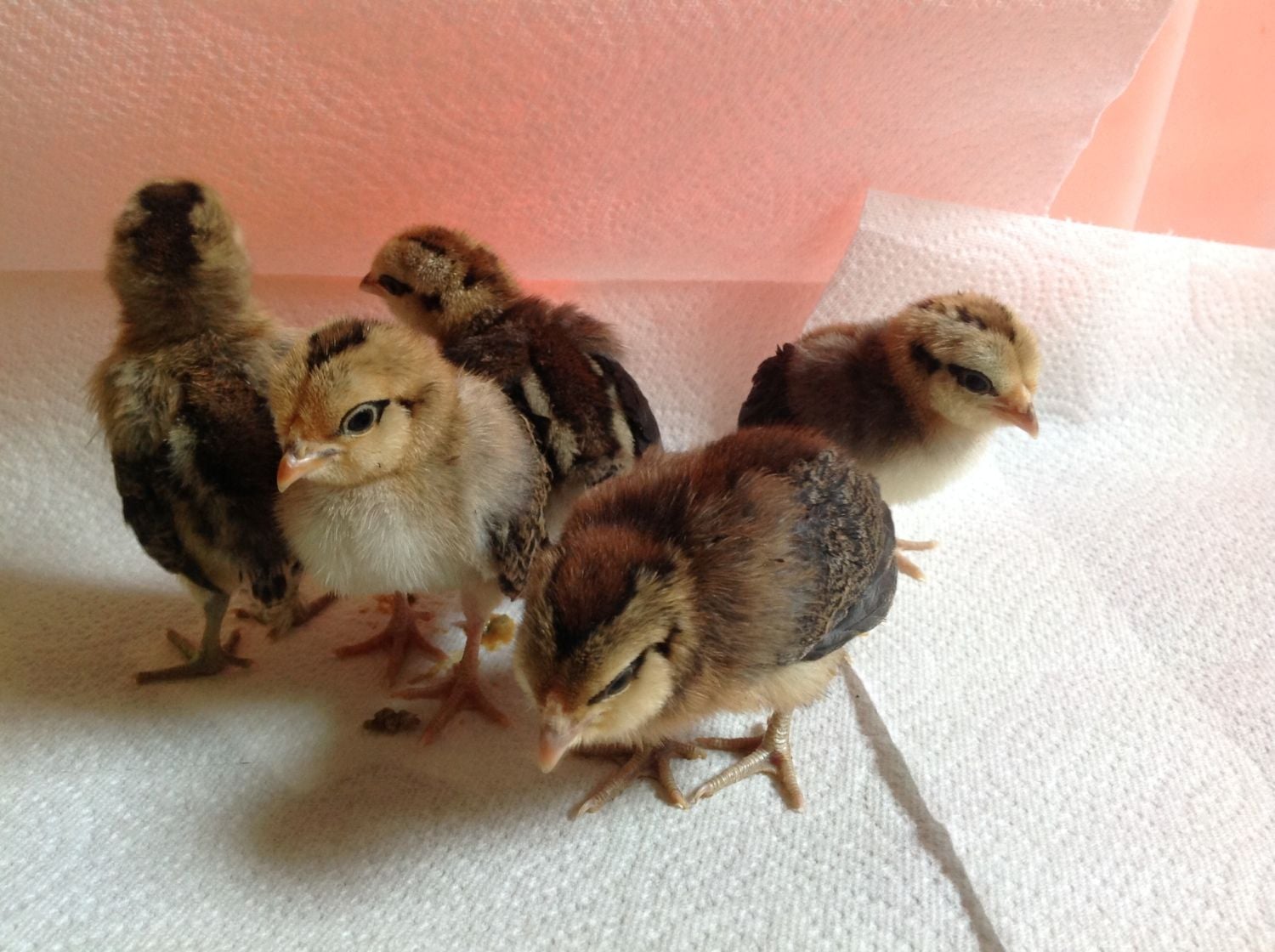 My chicks were darker chicks. They looked more like the darker chicks in the top picture and the chick in the bottom picture in the front. The didn't have the chipmunk markings. It looks like I may have the dark brown leghorns after all. That is what I wanted but had a very hard time finding browns. Now I need a new white male to go with my white girls. I recently lost my white male. He was fine one evening when I checked the birds the next morning he was dead in his coop.