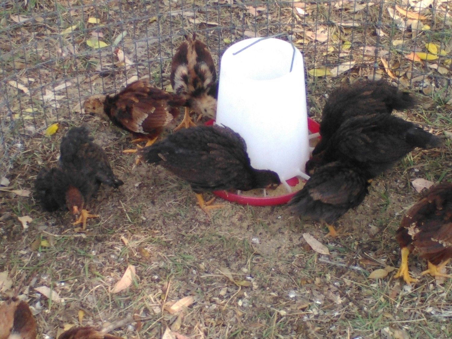 These are my month old Rose Comb Dark Brown Leghorn and Rose Comb RIR chicks.