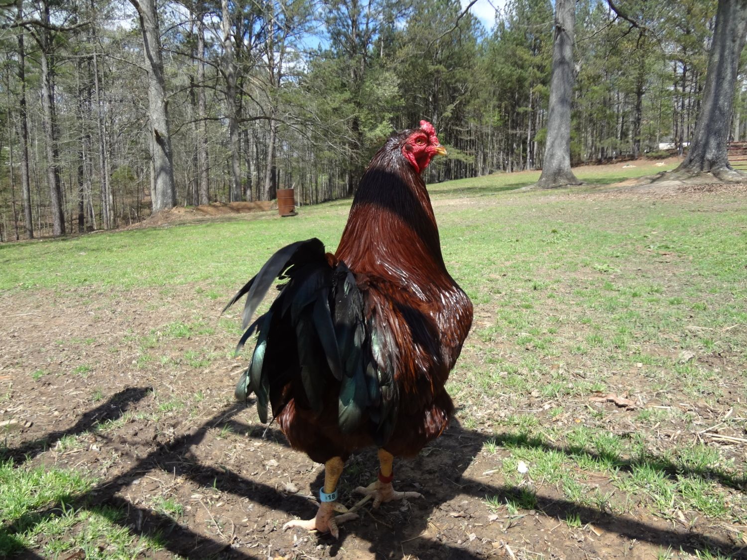I do NOT see a problem with leg length, NOR with sickle feather length, NOR with leg color (at least in the picture,the legs I see look yellow -- the pink you refer to appears to be simply the red veining-- nothing wrong with that). Like Janet, I like a little longer leg and I believe you have to beware of too short a leg. When a leg does get too long on occasion, it makes the bird appear thinner, rangy, too "game-like." It should be "medium" in length.