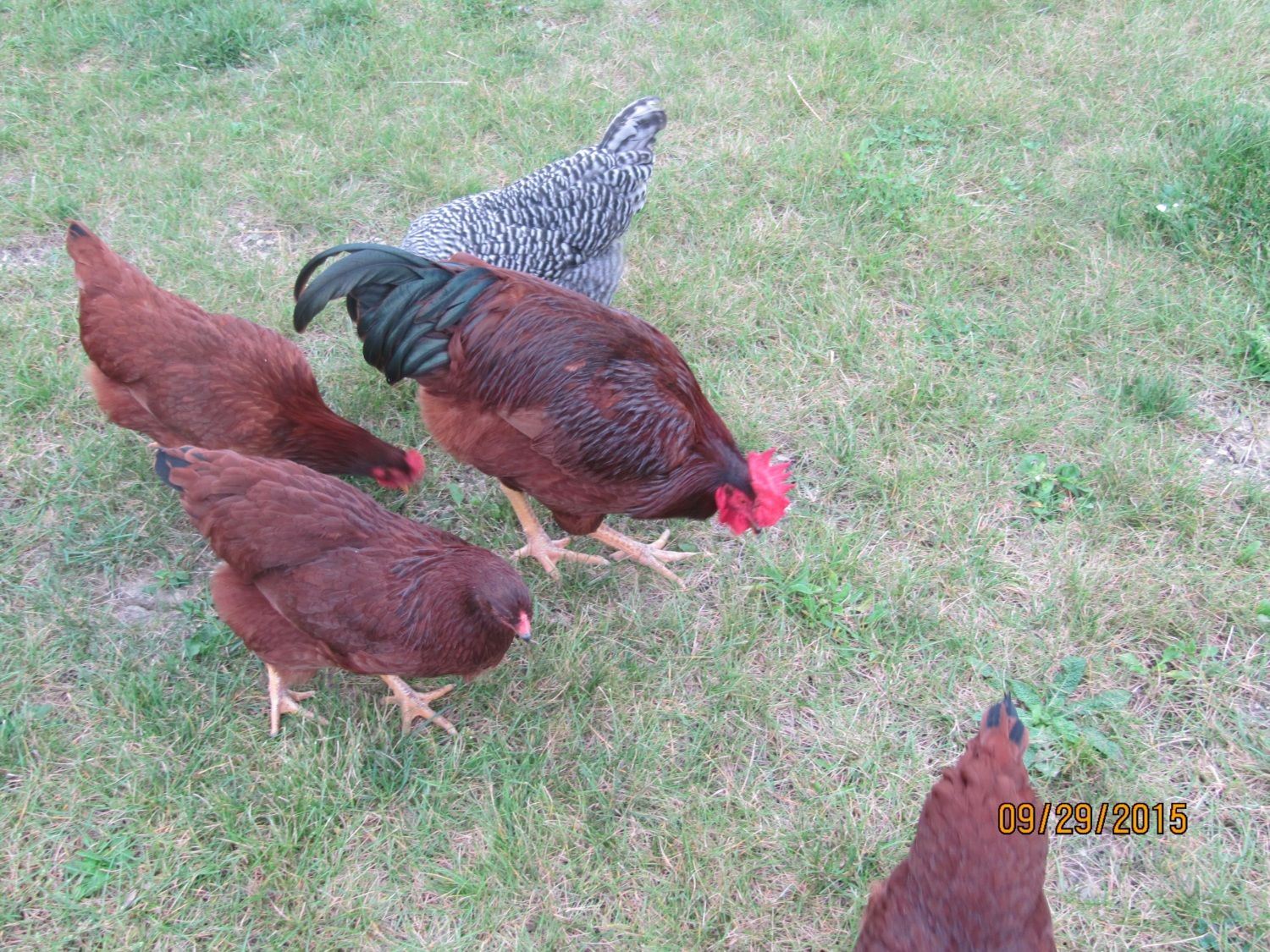 Bottom pic (from left to right): RIR pullet, Buckeye pullet, RIR cockerel