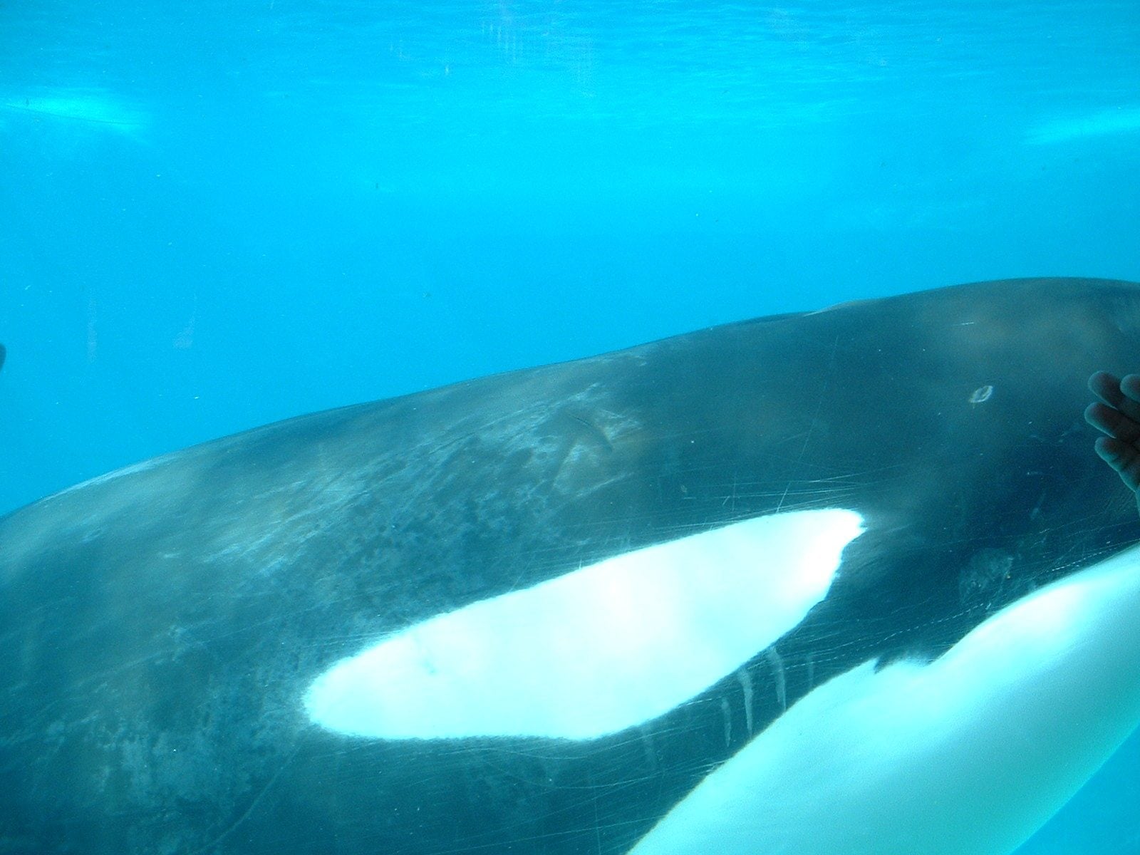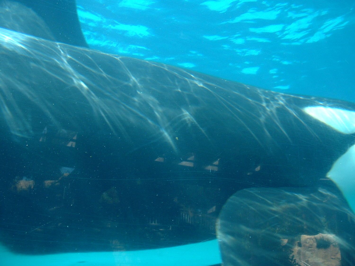 Ulysses Is one of the orcas at Sea World in San Diego. We went there around 11 years ago. There were many memorable moments there, but on our third day, I decided to sit down by the big glass viewing pane that looks into the Orca tank and take a break for a few minutes. We had been running around half the day and our next adventure wasn't for 45 minutes or so. There were other people there. Not lots, but I wasn't the only one there. I point this out because as soon as I sat down, Ulysses started swimming around the tank very fast doing barrel rolls on the far side of the tank. Every time around, when he passed me he would emit a high pitched call. Up to that time, I wasn't sure if he could see out but it sure seemed like it. I stood back up and moved closer to the middle of the pane. He stopped racing around and hovered there in front of me looking right at me. After a while in awe, I put my hand up to the glass and he put his nose right where my hand was. I moved my hand and he followed it with his nose. He was absolutely magnificent! I brought my hand down and he calmly swam back off in his tank. That was the end of my encounter but it was amazing. The other people who were there couldn't believe he had focused so intently on me. Neither could I. Must have looked like someone he knew.