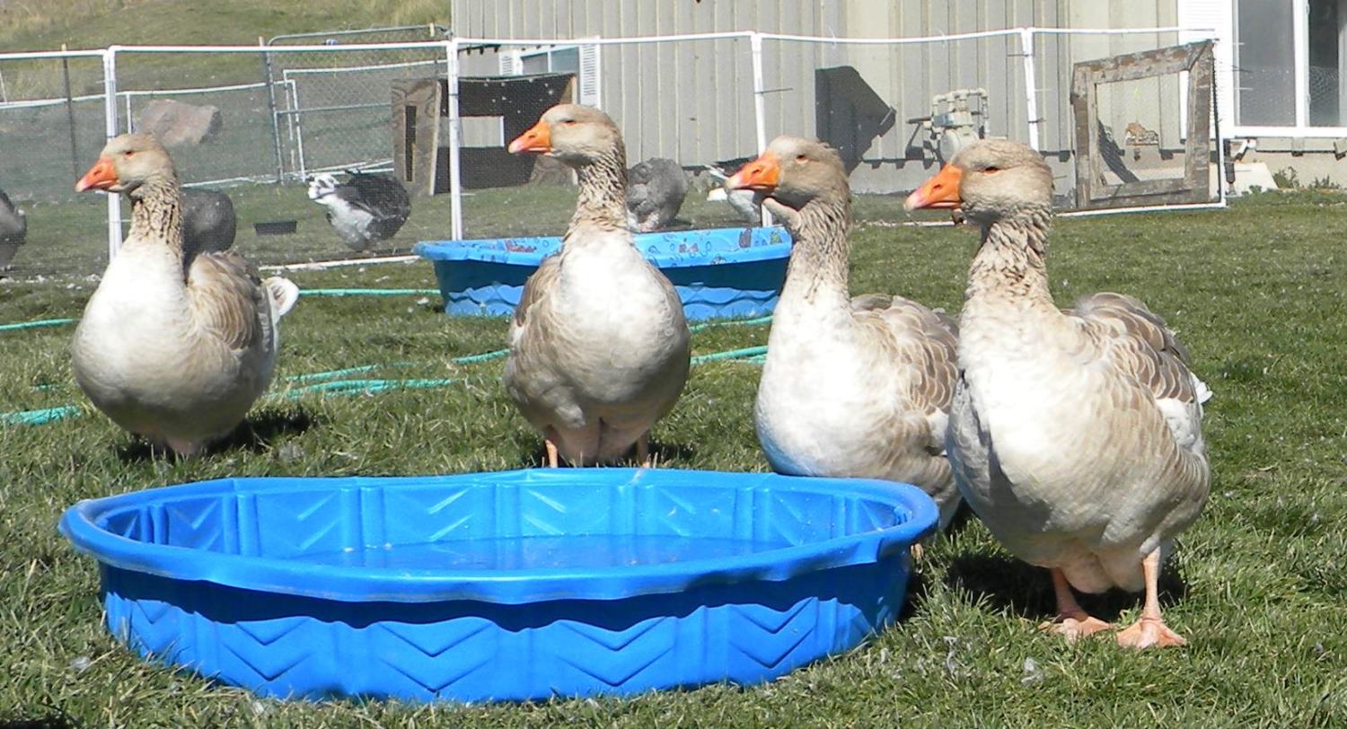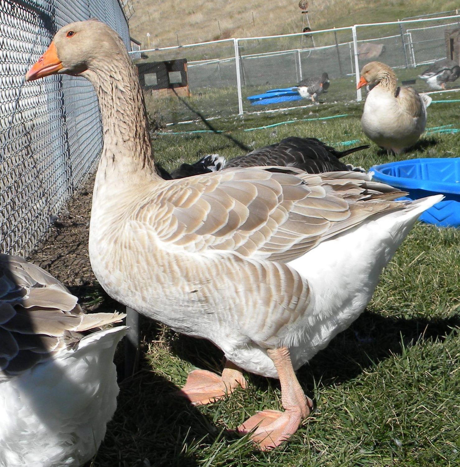 Some appear rather nice but need more work to develop the Dewlap type in a breeding programme. They're almost midway in type between a Dewlap and Production Toulouse. Given that they're all Buffs my hunch would be a cross with an American Buff.